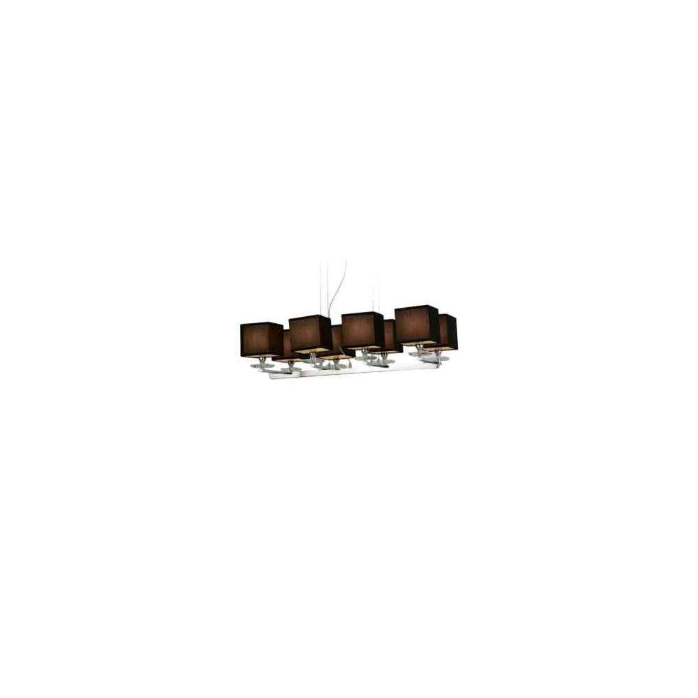 Fianelo to metalowy żyrandol z abażurami z ognioodpornej tkaniny w kolorze czarnym lub szarym. Zawiera 8 punktów świetlnych z gniazdem E14, napięcie 220-240V, moc 40W. Nadaje się do wszystkich rodzajów żarówek, brak w zestawie.