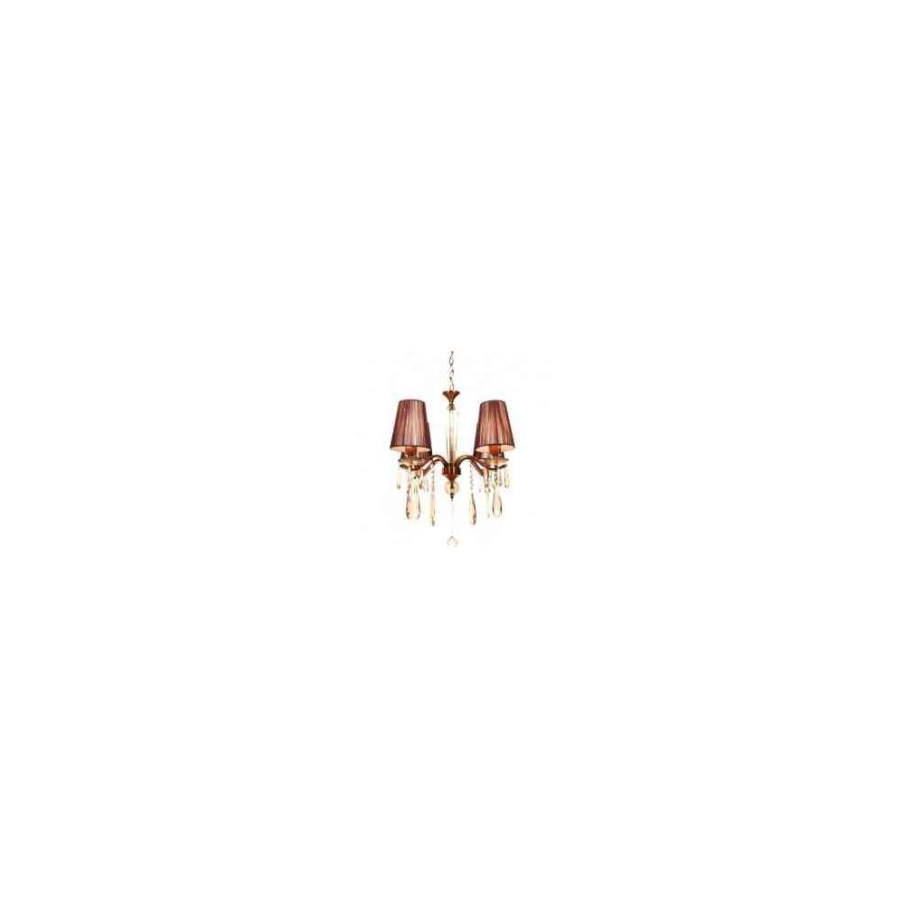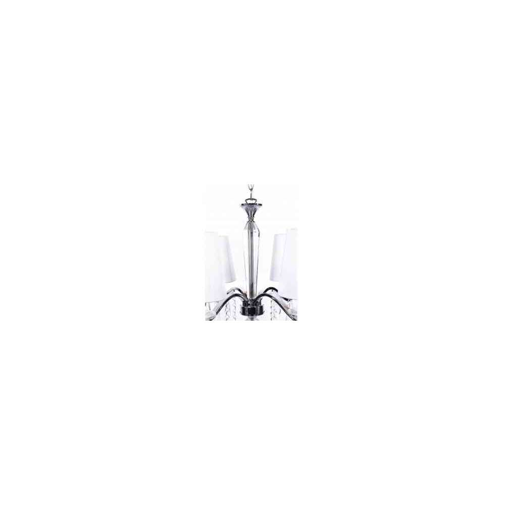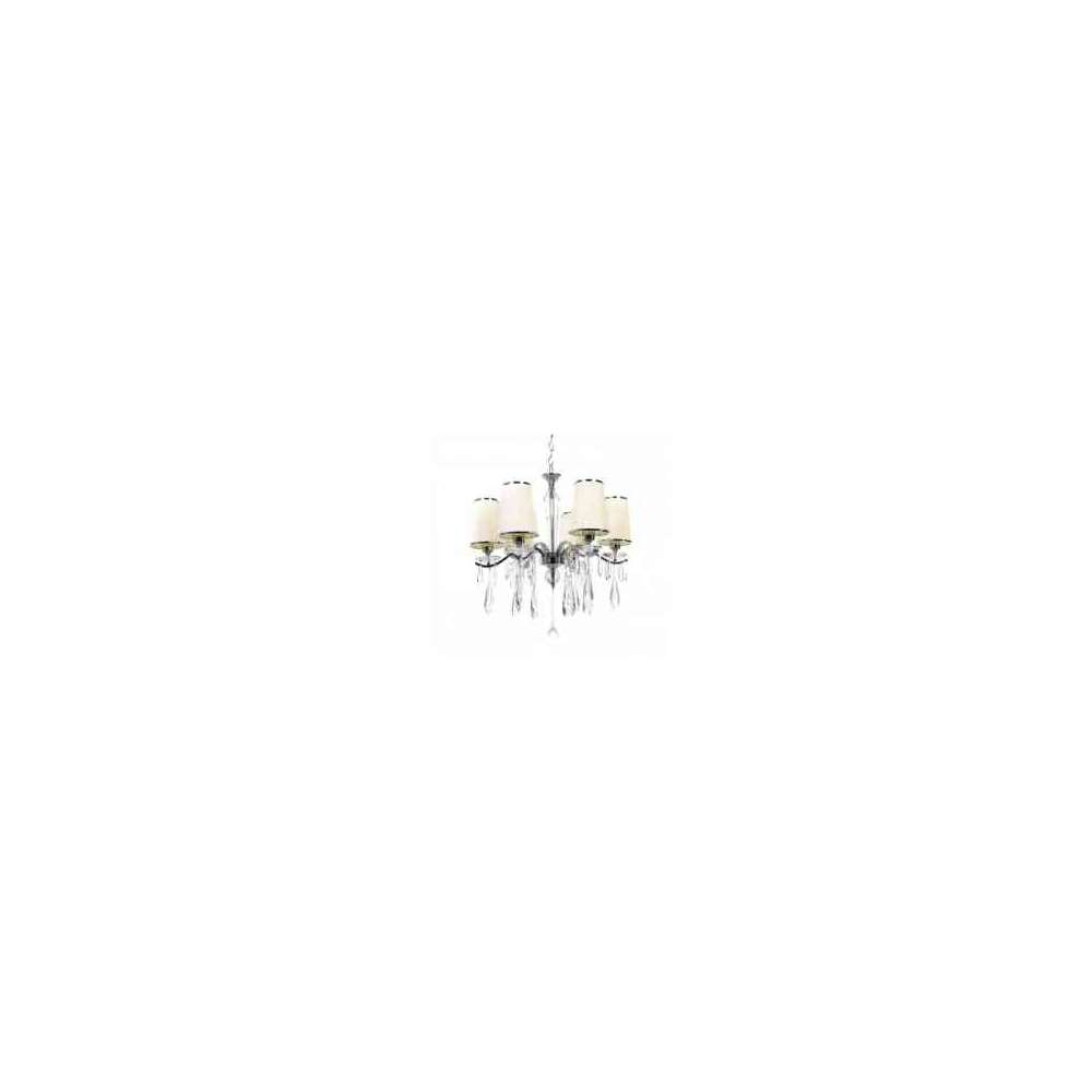 Alessia to metalowy żyrandol z kryształkami i abażurami z ognioodpornej tkaniny w wersji kremowej, białej lub brązowej. Dostępna w wersji z 4 lub 6 punktami świetlnymi z gniazdem E27, napięcie 220-240 V, moc 40W. Nadaje się do wszystkich rodzajów żarówek, brak w zestawie.