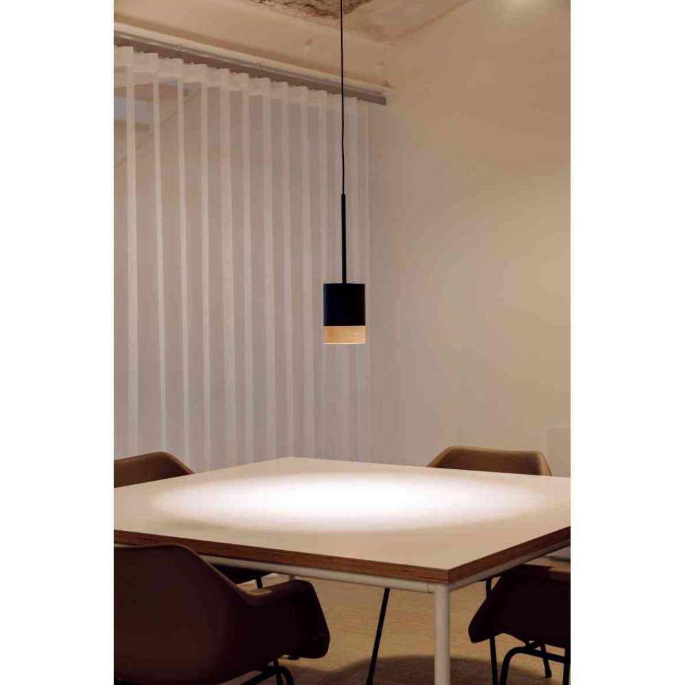 Trzecia to lampa wisząca LED z głowicą z tłoczonej stali, wykończoną czarnym matowym lakierem (RAL 9005) i malowanym dyfuzorem z drewna jesionowego. Konstrukcja korpusu Thirdu podzielona jest na trzy równe części, z których dwie składają się na głowę wytłoczoną w lakierowanej stali, a trzecia część to klosz rozpraszający wyrzeźbiony w jesionie. Rozsył światła tej lampy wiszącej jest skupiony i generuje aureolę subtelnego światła. Podobnie jak głowica, podstawa mocowana do sufitu również wykonana jest z matowej czarnej lakierowanej stali. Trzeźwość, z jaką zawisa w przestrzeniach i sprzeczna asymetria połączeń materiałów sprawiają, że jest bardzo atrakcyjny dla architektów i projektantów wnętrz. Źródło światła: - 1 x GU10 Żarówka LED typu retrofit 8W - 600 lumenów | 2700 K - ściemnianieOdbiorca: :