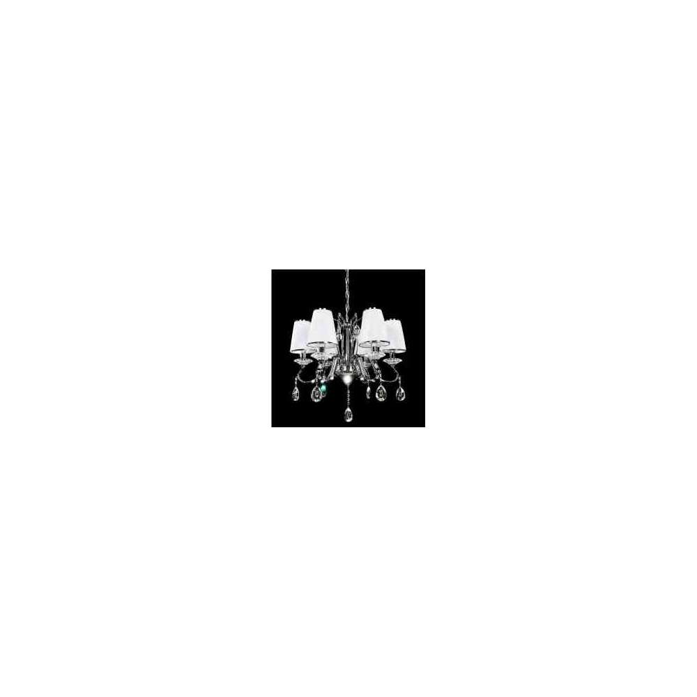 Finezzia to metalowy żyrandol z kryształami i kloszami z ognioodpornej tkaniny. Posiada 6 punktów świetlnych z gniazdem E14, napięcie 220-240 V, moc 40 W, pasuje do każdego rodzaju żarówki. Dostępne w różnych kolorach.Odbiorca: :