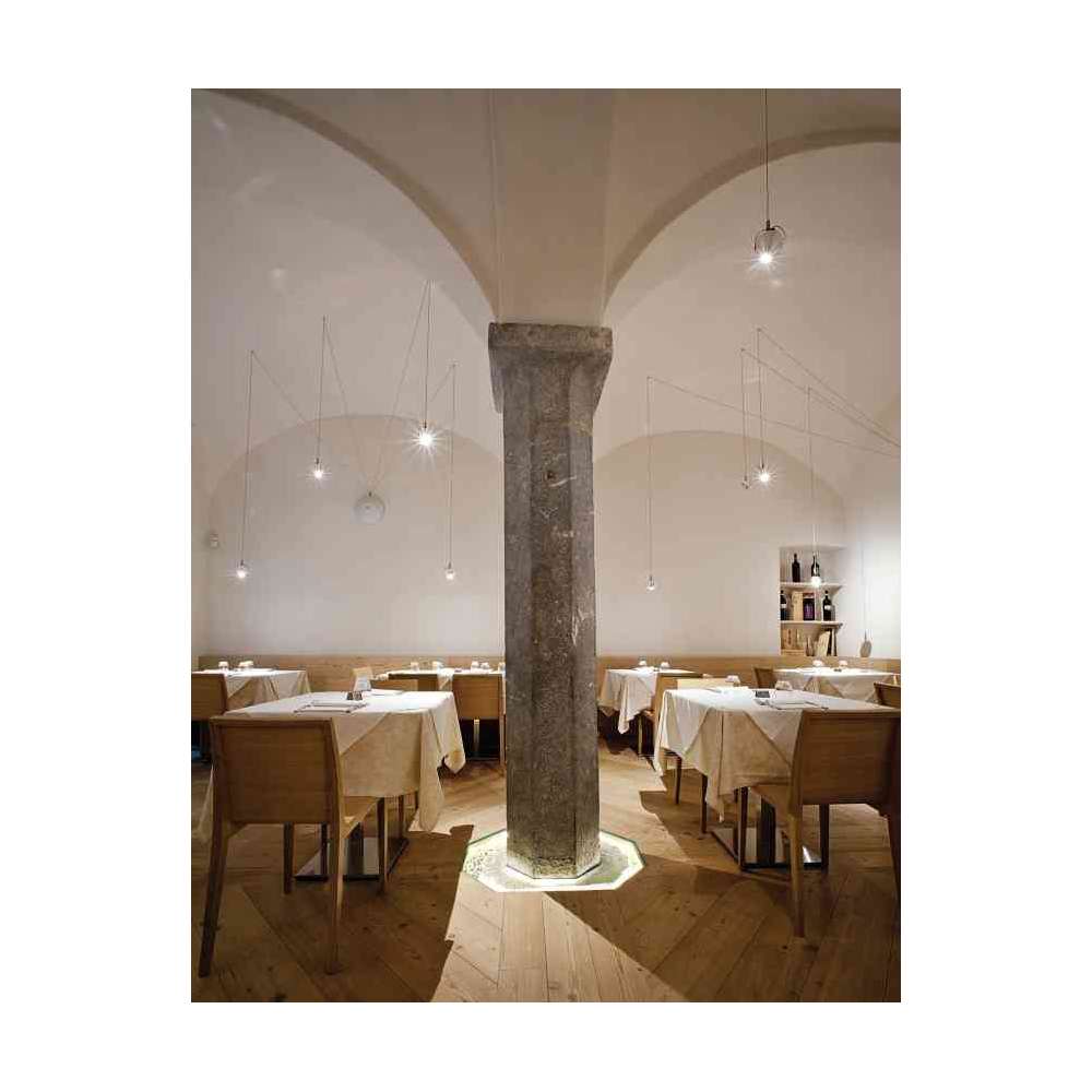 Radiale to system o bardzo niskim napięciu (tylko 12 V). Zawiera rozetę, montowaną zgodnie z punktem świetlnym, z której rozgałęziają się w żądanych kierunkach plecione kable zasilające i zawieszające oprawy oświetleniowe. Podsufitka, która występuje w kilku wersjach, niektóre z oświetleniem, zawiera transformator i może być montowana zarówno na ścianie, jak i na suficie. Korpusy oświetleniowe dostępne są w wielu modelach o różnych kształtach, wykończeniach i rodzajach produkowanego światła. Zastosowane korpusy oświetleniowe: CAMPANELLA - BUCANEVE - CRESPELLA - DARDO - DIATOMEA - FILI D'ANGELO - FARFALLA - GALAVERNA - FREDGINGER -GEMMA - GOCCIA - GHIACCIOLO - LILIUM - MEDUSINA - MOZZARELLA - NUVOLA - PASTICCINI - OSTRICA - PENDILLA - PATATA - PENDOLINO - POPONE - SIGARETTA - SIGARO - STRALE - SEPPIOLINA - OVOSODOOdbiorca: :