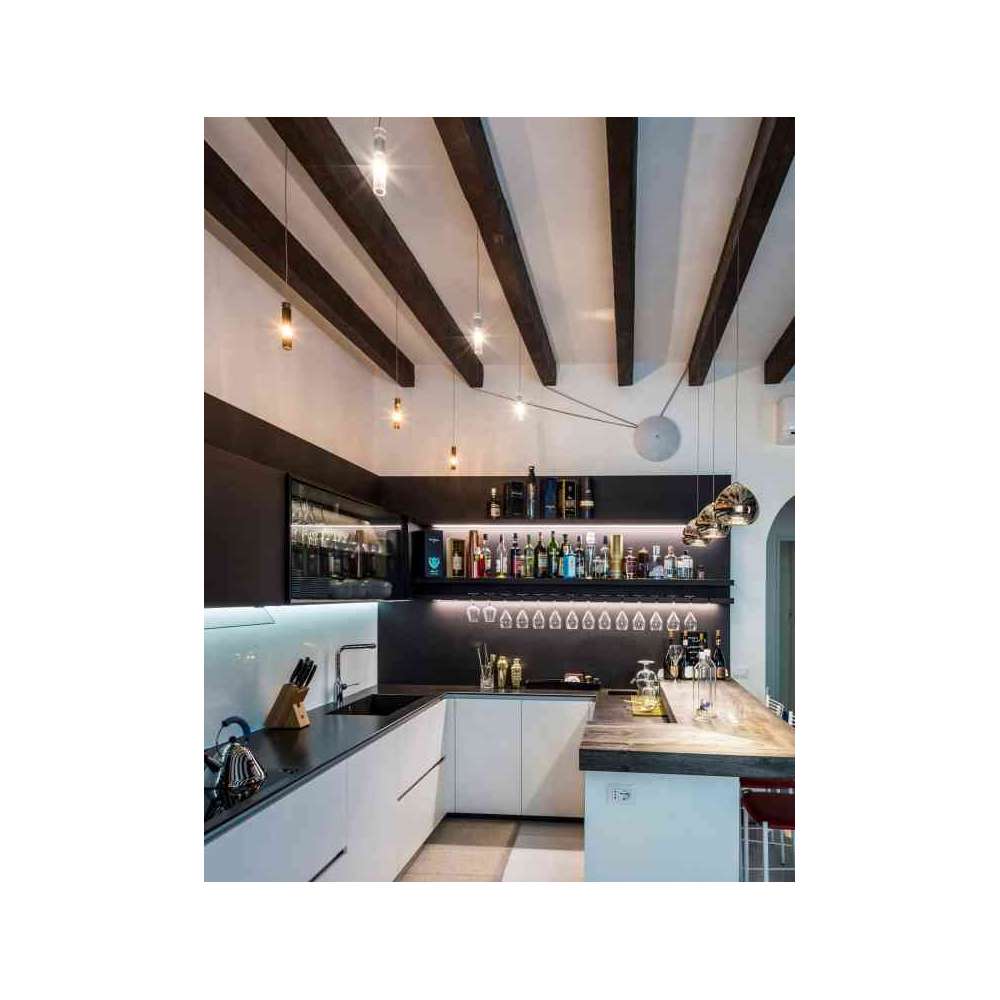Radiale to system o bardzo niskim napięciu (tylko 12 V). Zawiera rozetę, montowaną zgodnie z punktem świetlnym, z której rozgałęziają się w żądanych kierunkach plecione kable zasilające i zawieszające oprawy oświetleniowe. Podsufitka, która występuje w kilku wersjach, niektóre z oświetleniem, zawiera transformator i może być montowana zarówno na ścianie, jak i na suficie. Korpusy oświetleniowe dostępne są w wielu modelach o różnych kształtach, wykończeniach i rodzajach produkowanego światła. Zastosowane korpusy oświetleniowe: CAMPANELLA - BUCANEVE - CRESPELLA - DARDO - DIATOMEA - FILI D'ANGELO - FARFALLA - GALAVERNA - FREDGINGER -GEMMA - GOCCIA - GHIACCIOLO - LILIUM - MEDUSINA - MOZZARELLA - NUVOLA - PASTICCINI - OSTRICA - PENDILLA - PATATA - PENDOLINO - POPONE - SIGARETTA - SIGARO - STRALE - SEPPIOLINA - OVOSODOZapisz się do naszego newslettera i otrzymuj oferty specjalne i rabaty dla stałych i nowych klientów! Wystarczy, że podasz nam swój adres e-mail i nie przegapisz już żadnej oferty!
