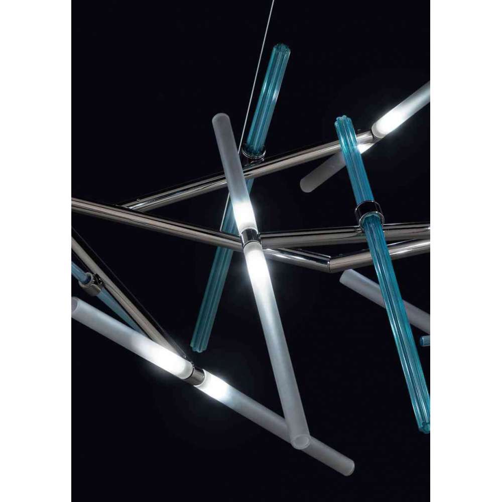 Kolor | tuby z sekcją w gwiazdki oraz tuby ze szkła Murano są w kolorze akwamarynowym i turkusowym lub w kolorze tytoniowym; Oprawki do żarówek borokrzemianowych są w kolorze satynowym fumè. Inne kolory na życzenie.