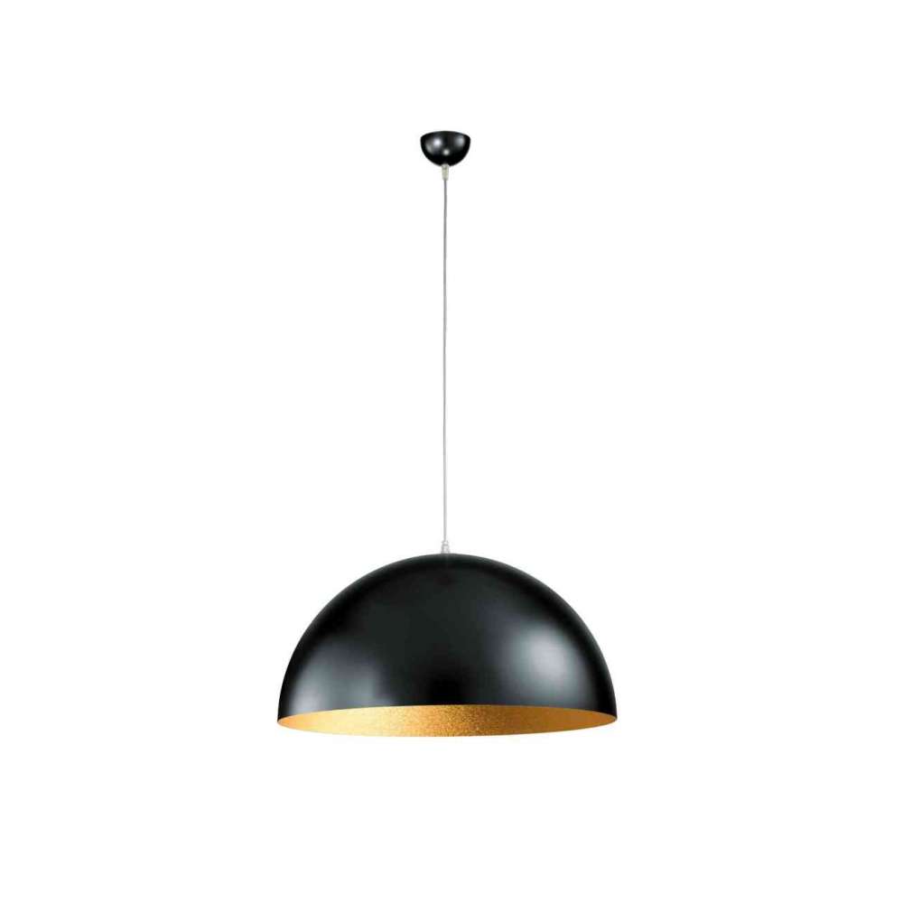 OFU to półkulowa lampa wisząca z malowanego metalu dostępna w kolorze białym (z białym wnętrzem) i czarnym (z białym lub złotym wnętrzem). Detale i daszek pasujące do klosza, linka zwieszakowa z przezroczystego PVC. Okablowana z gniazdem E27 umożliwiającym montaż żarówki LED.