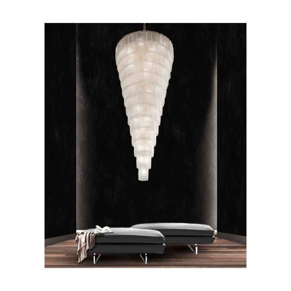 Plissè to lampa wisząca wykonana z wiszących listew z plisowanego szkła wykonanego w Veneto. Cechy techniczne: Wykończenie: czarny nikiel, lśniące złoto. Inne wykończenia na zamówienie. Kolory: listwy wiszące w kolorze satyny transparentnej, w kolorze satyna rosaline lub satynowy brąz. Inne kolory na życzenie. Szczegóły: konstrukcje wykonane ręcznie. Źródło światła: 87 - 40 E14 x max 40W + 4 G9 x max 28W 95 - 31 E14 x max 40W 83 - 24 E14 x max 40W 72 - 19 E14 x max 40W 60 - 13 E14 x max 40W 48 - 9 E14 x max 40 W 36 - 6 E14 x maks. 40WOdbiorca: :