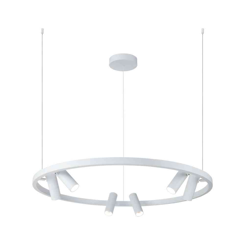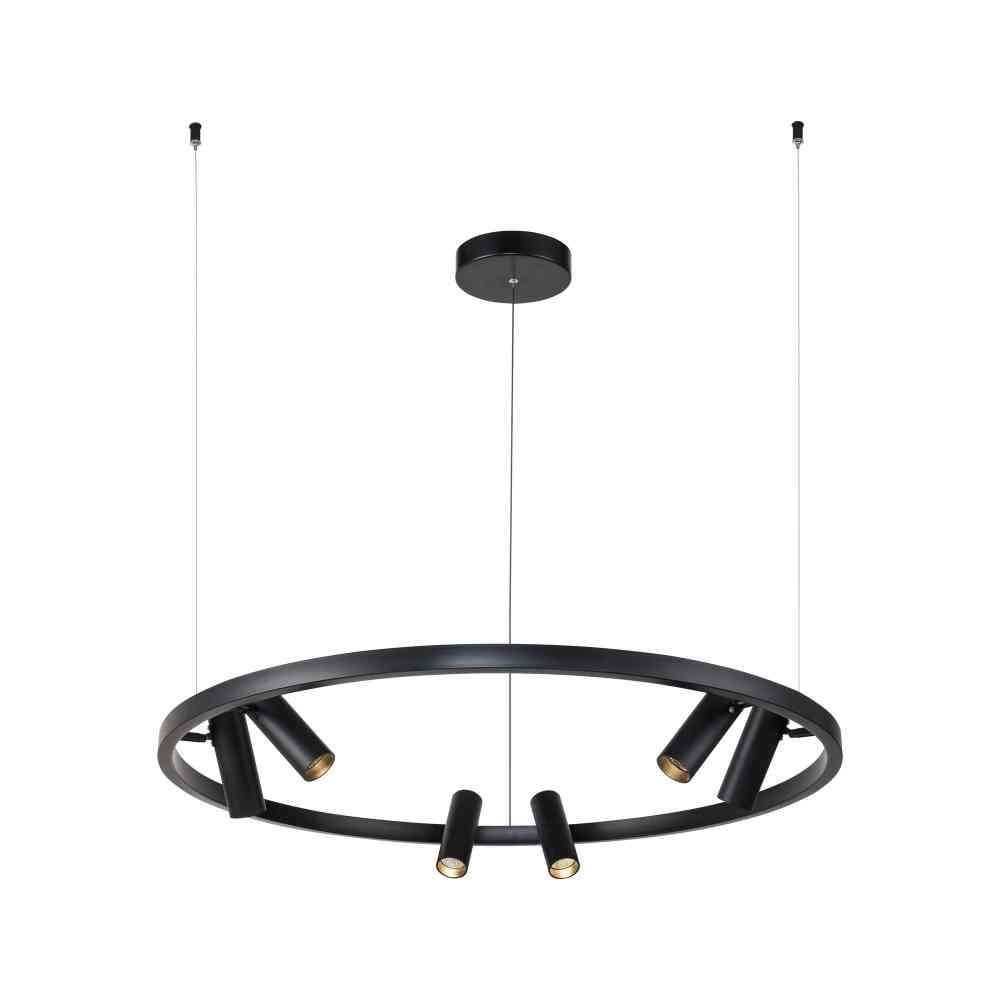 Okrągła metalowa rama. Obrotowe miejsca. Wbudowany moduł LED.