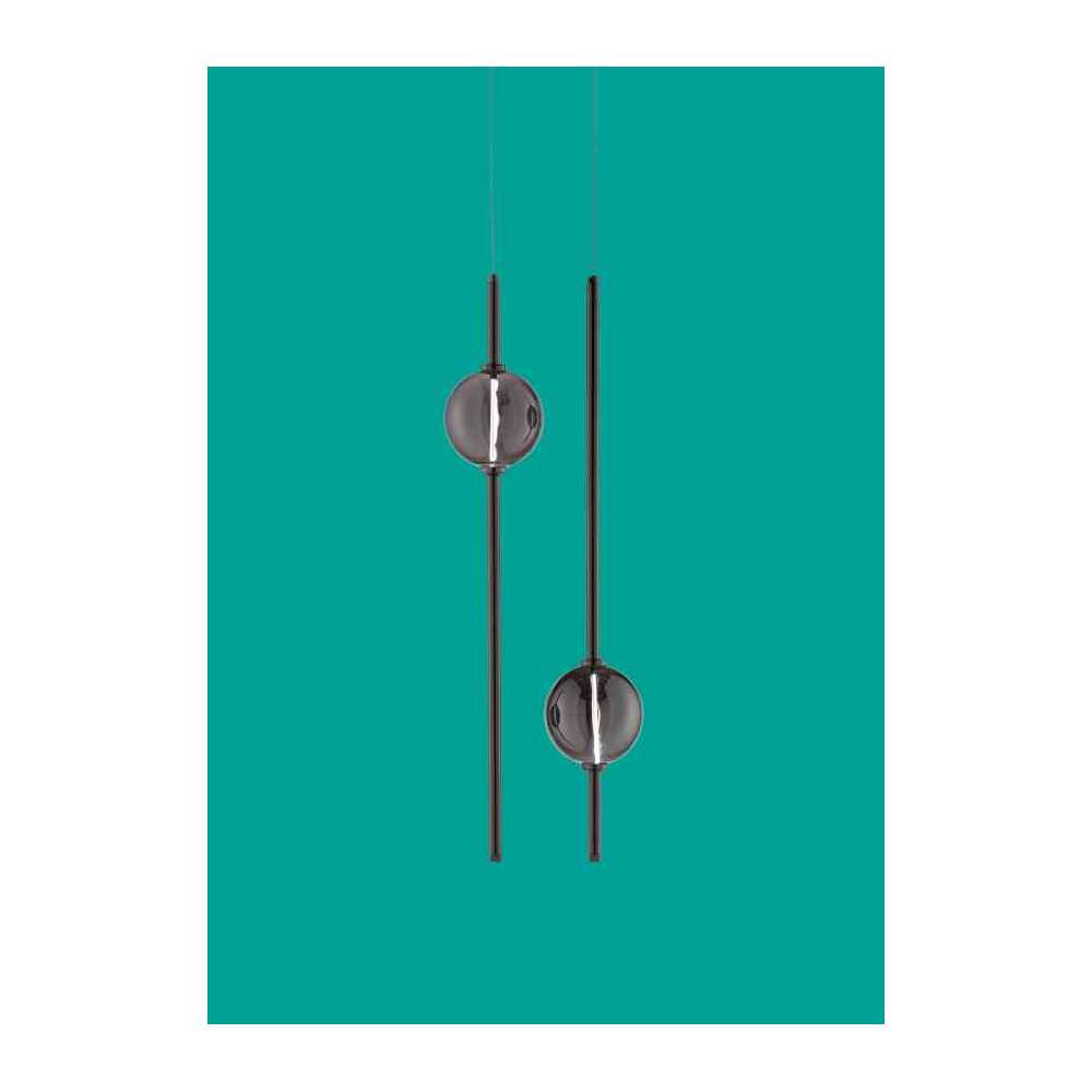 Txxnty Brand Design otwiera niezwykłe okno na przyszłość, która dzięki wieloletniemu doświadczeniu Euroluce i bez poświęcania prestiżowego know-how, spogląda na nowe horyzonty stylistyczne. Kolekcje Txxnty Brand Design mają na celu powiązanie przedmiotów i energii z ludźmi. Refleksja na temat światła oraz relacji z materiałami i kształtem skupia się na zaproponowaniu geometrii, kolorów i efektów, tworząc „poważną” interakcję między wyobraźnią a rzeczywistością. Dbałość o szczegóły powierzona jest, jak zawsze, wiedzy i doświadczeniu wykwalifikowanych rzemieślników. Mikado to lampa wisząca LED wykonana z Pyrexu. 1 tinylight 2W - 3500 °K 24 Vdc - 300 lm Zakończ | czarny nikiel, lśniące złoto. Inne wykończenia na życzenie. Kolor | kule Pyrex z metalicznego czarnego niklu lub metalicznego błyszczącego złota. Inne kolory na życzenie. Szczegóły | Kule Pyrex z metaliczną dekoracją: gdy zawieszenie jest wyłączone, źródło światła nie jest widoczne: gdy zawieszenie jest włączone, widać żarnik led.Odbiorca: :