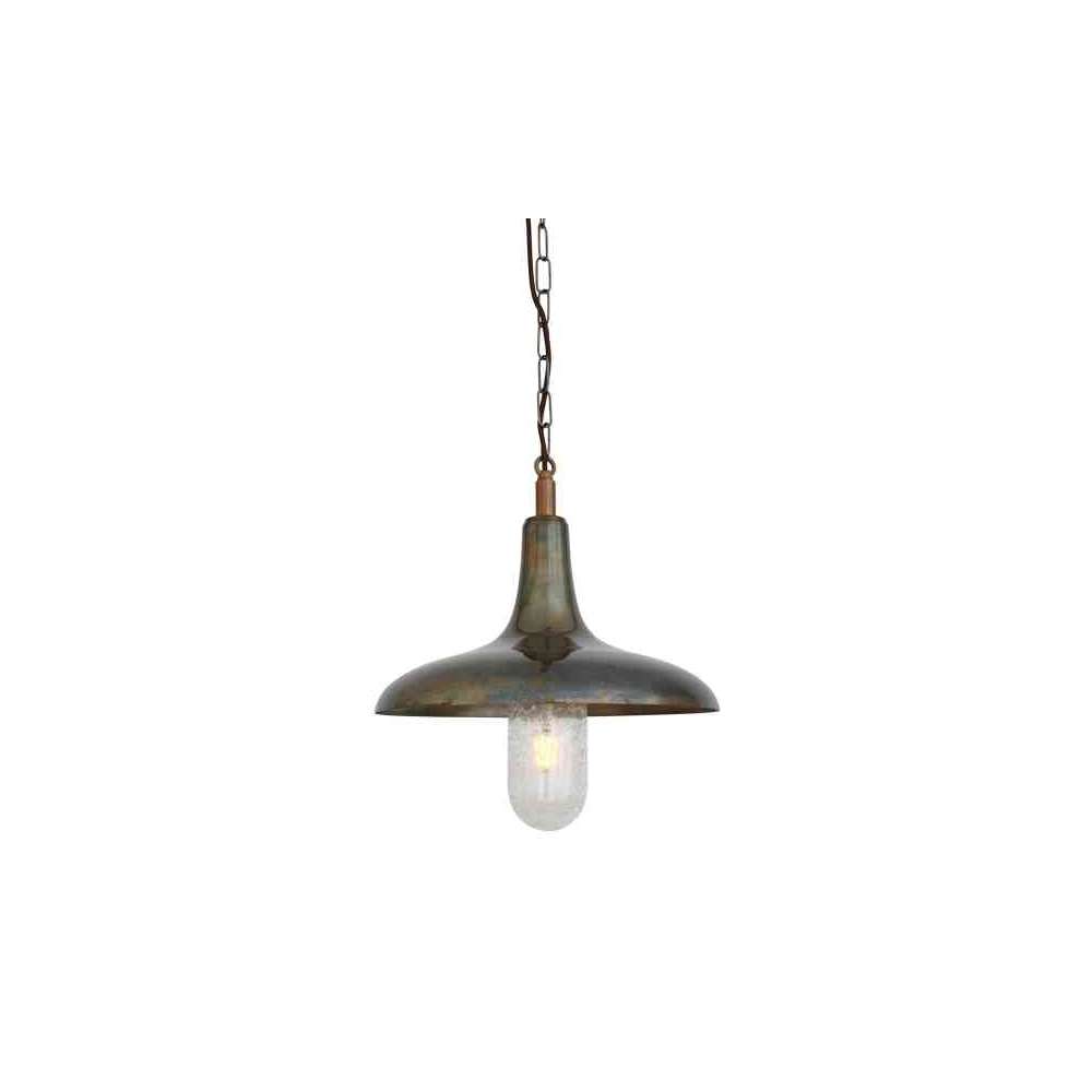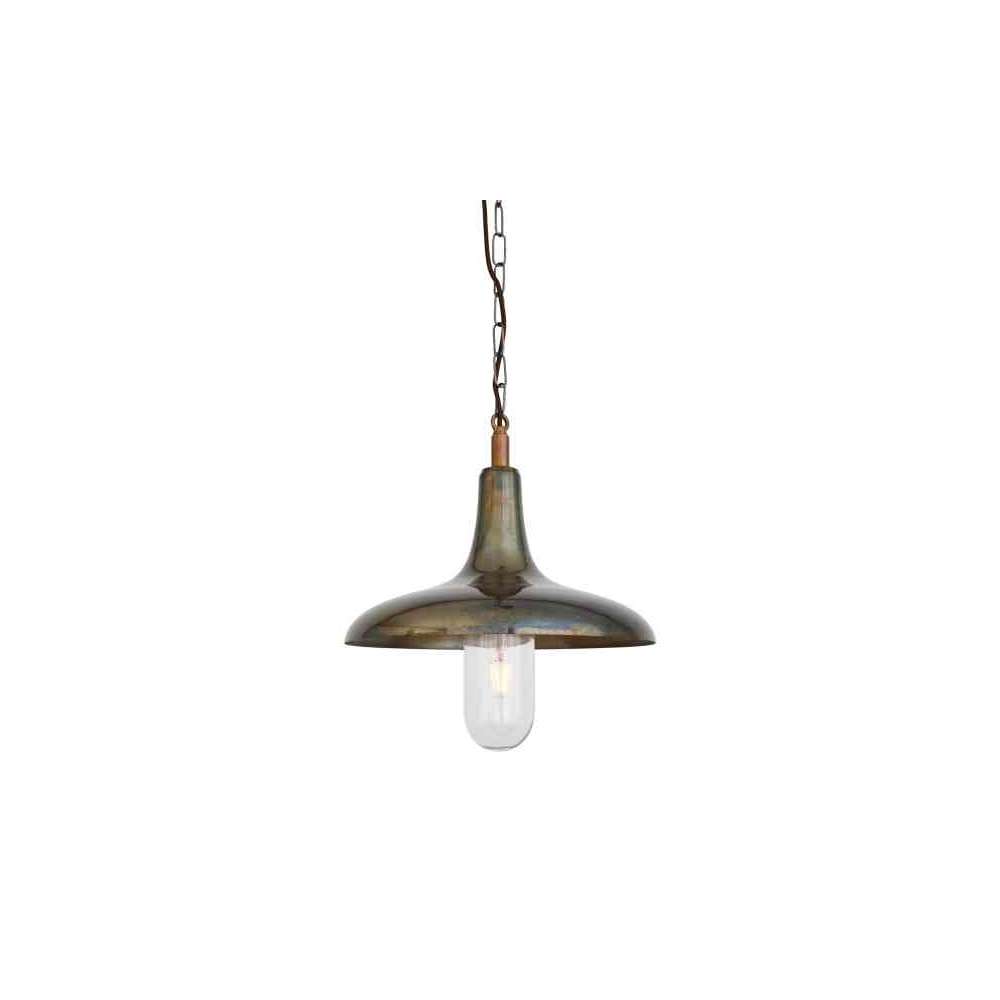 Lampa wisząca MORGAN to przemysłowa lampa wisząca o stopniu ochrony IP65. Oznacza to, że można go bezpiecznie zainstalować w 1 i 2 strefie łazienkowej oraz w większości lokalizacji na zewnątrz. Będzie to na przykład idealna lampa wisząca na werandzie. Zawieszka łazienkowa MORGAN INDUSTRIAL składa się z mosiężnego klosza w stylu industrialnym i łańcuszka, który mocuje ten klosz do dostarczonej rozety sufitowej. Standardowo dostarczany jest metr łańcucha i kabla elektrycznego. Wewnątrz mosiężnego klosza MORGAN znajduje się dobrze szklany klosz, który zapobiega kontaktowi wilgoci z żarówką LED w przemysłowej zawieszce (sprzedawana osobno). Szklany klosz jest dostępny w wykończeniu przezroczystym, matowym lub spękanym.