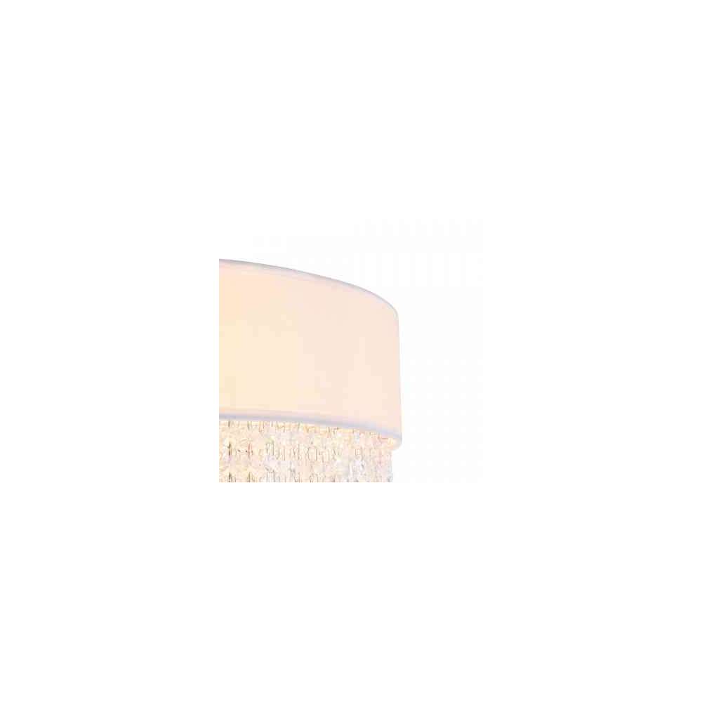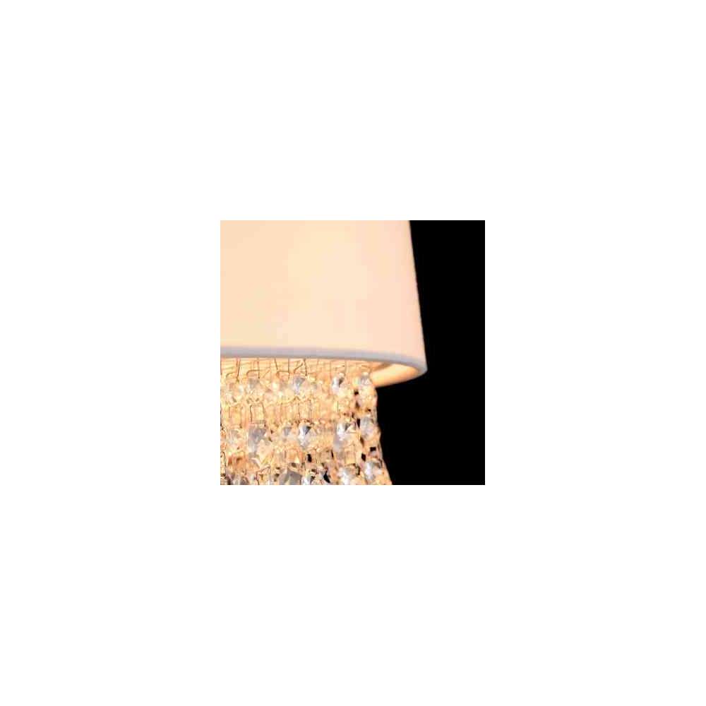 Manfred ma metalową ramę. Dyfuzor PVC pokryty tkaniną. Wisiorki kryształowe.