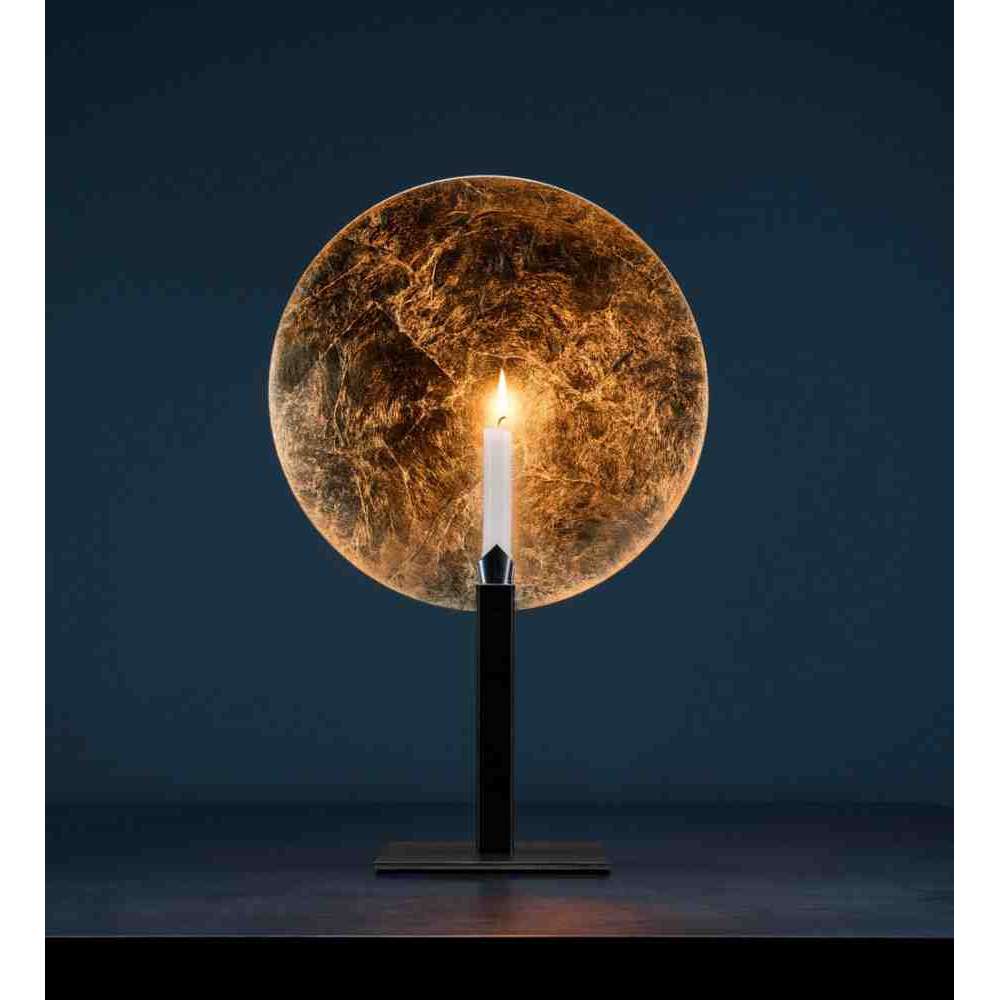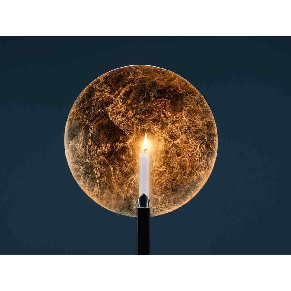 Materiały: woskowana podstawa z surowego żelaza, aluminiowy dysk (Ø 30 cm) i łapacz wosku, świeca