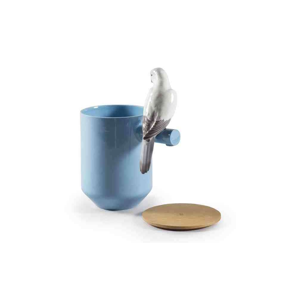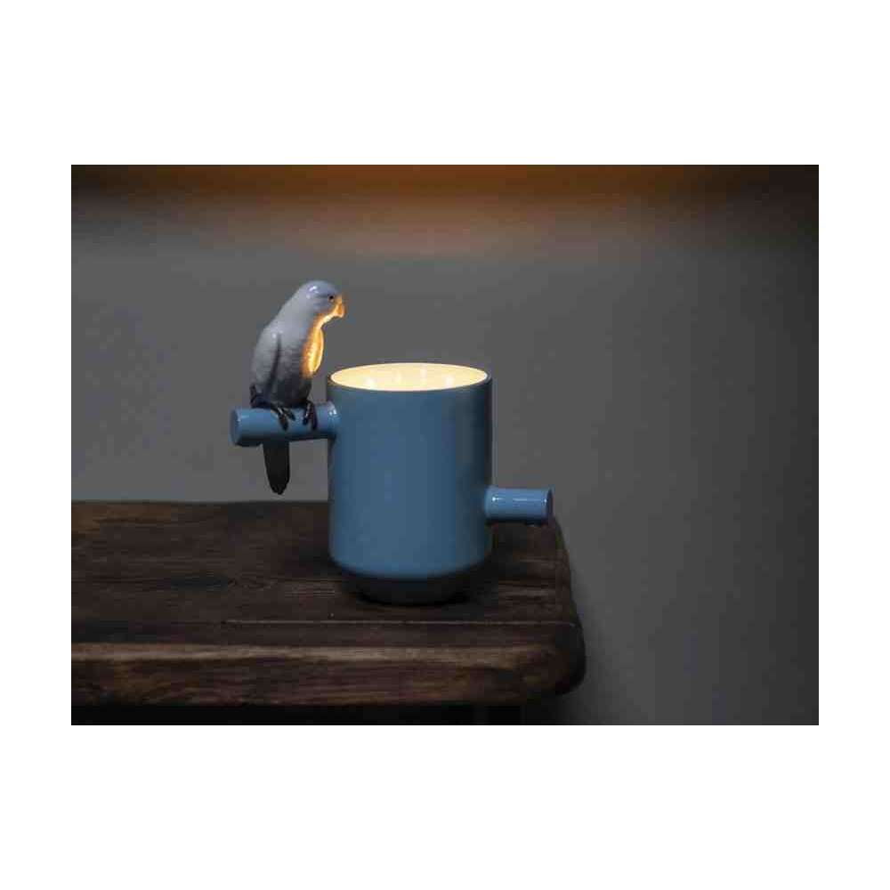 Ten oryginalny porcelanowy świecznik wyróżnia się zabawnym, zaskakującym designem, opartym na kontraście między nowoczesnymi, funkcjonalnymi formami świecznika a realistycznym modelem pieczołowicie zdobionej uroczej papugi, która na nim spoczywa.