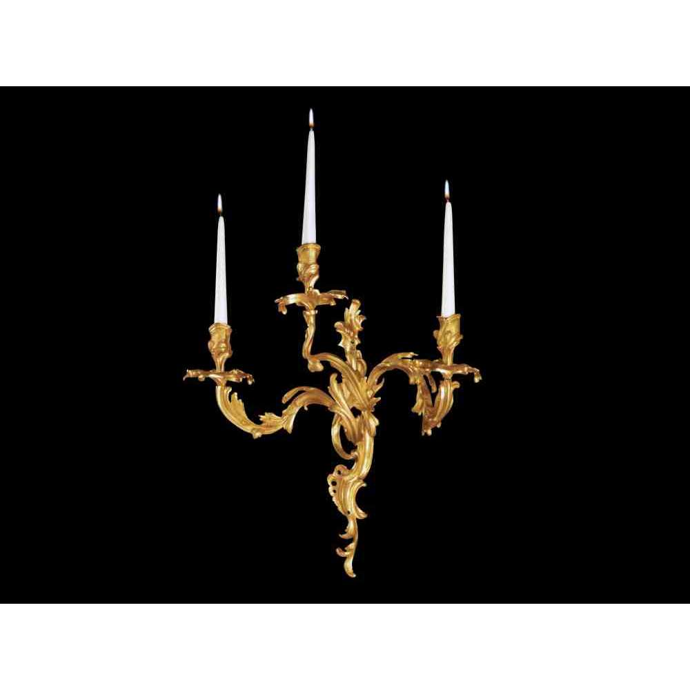 Trójramienny kinkiet Ludwika XV. Płyta tylna z pozłacanym brązem 24K.
