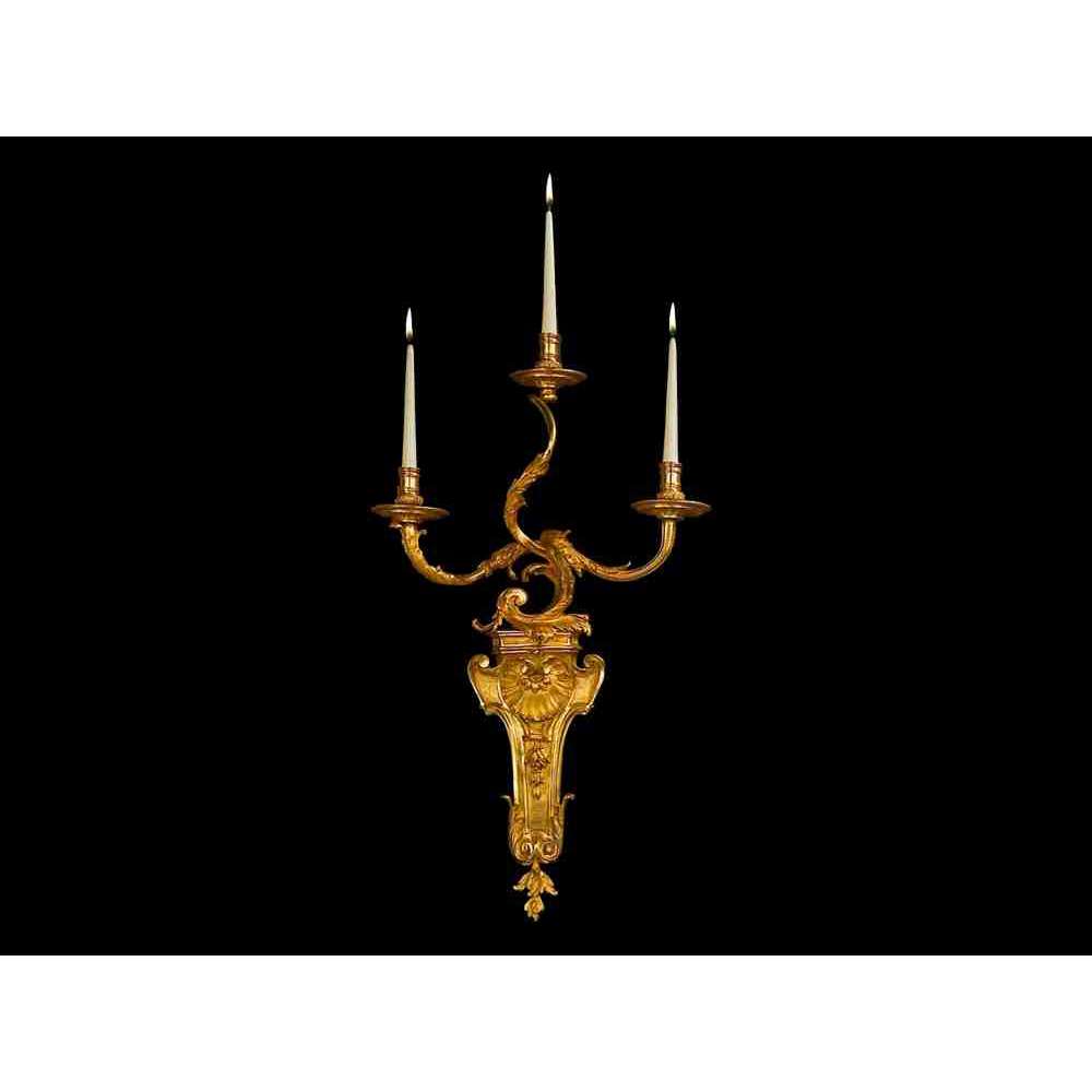 Trójramienne kinkiety lustrzane Regence z pozłacanym brązem 24K.