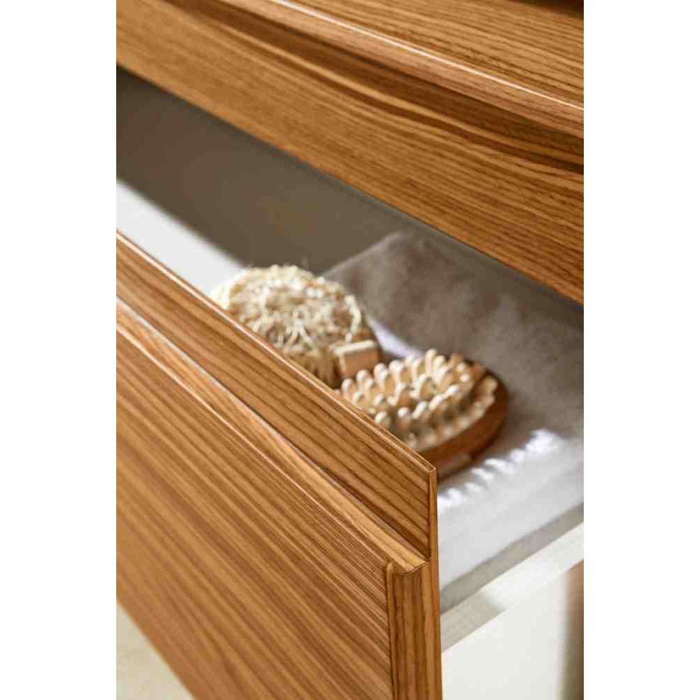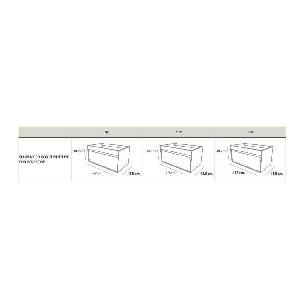 Pudełko to podwieszana szafka podumywalkowa z szufladami wykonanymi z drewna.