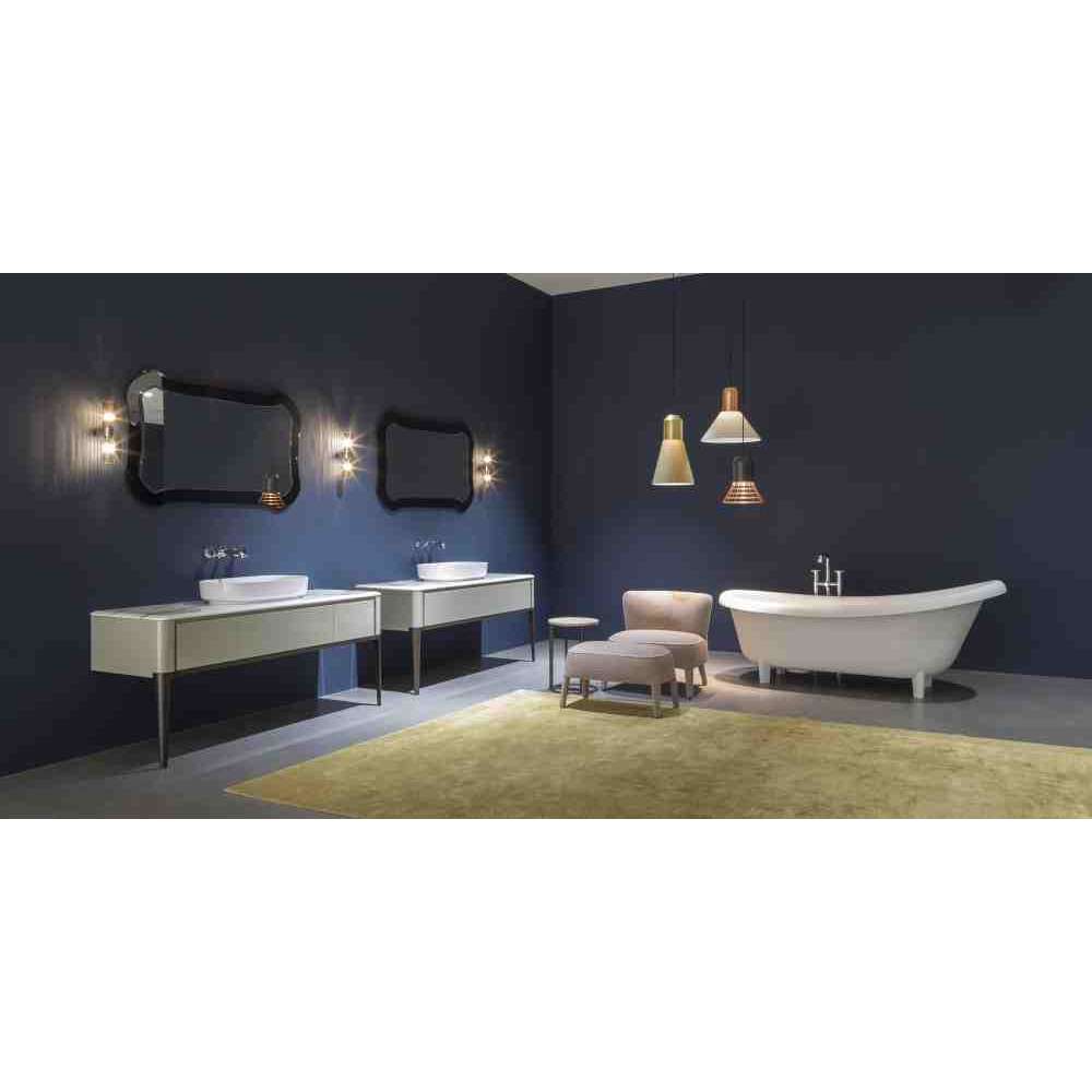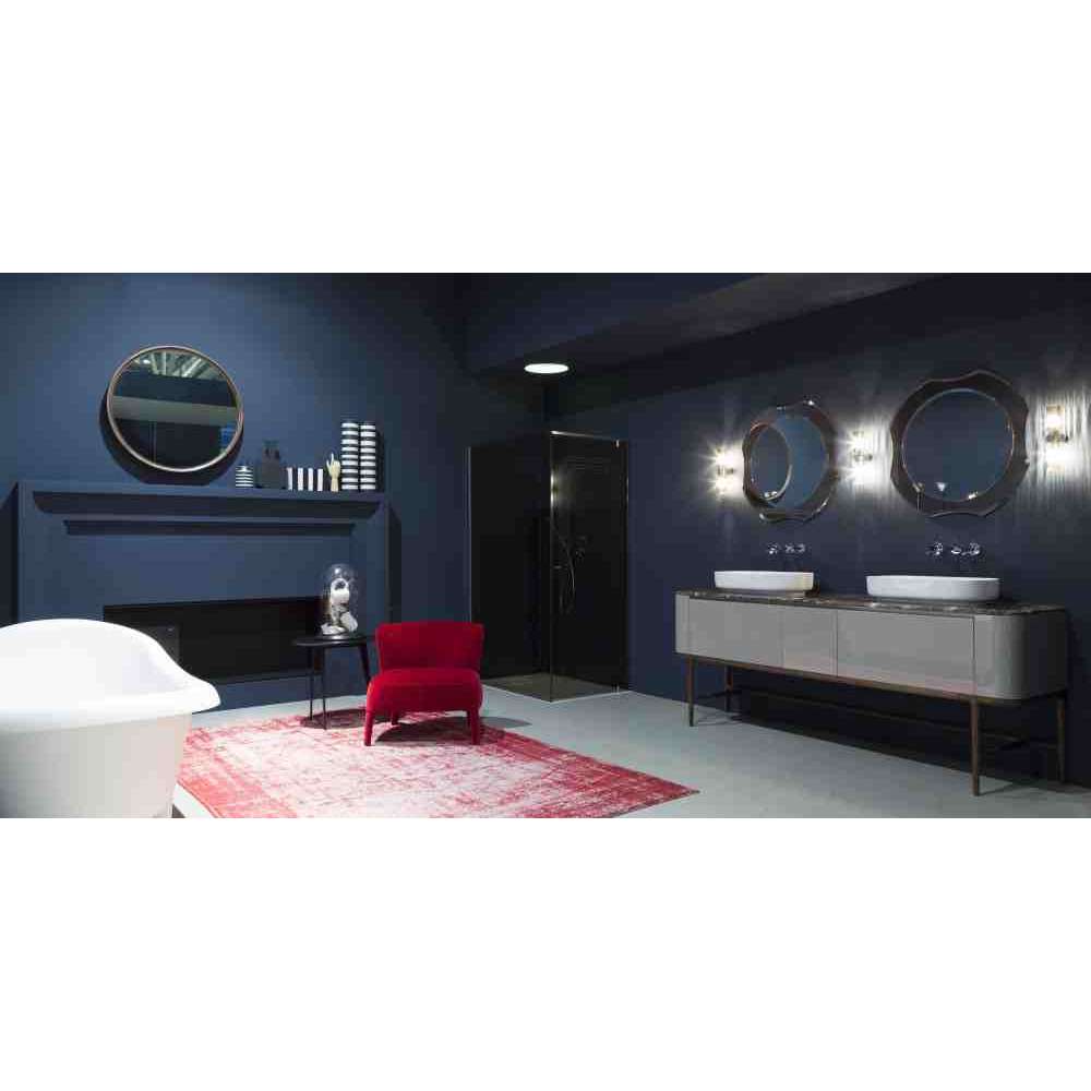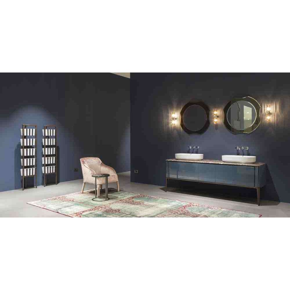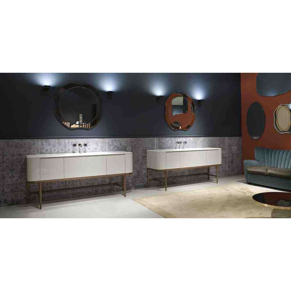Meble, konsole, kinkiety, lustra, akcesoria, wanny, prawdziwy projekt, niezwykle emocjonalna kolekcja z materialnym charakterem drewna i mądrym wykorzystaniem lakierowanego koloru, tworzą intymną i wyrafinowaną atmosferę. W rzeczywistości charakteryzuje się różnymi komponentami pod względem materiałowym i estetycznym, ale łączy je jedna filozofia, która identyfikuje projekt dzięki romantycznemu smakowi wszystkich elementów. Wyrafinowana reinterpretacja klasycznych form i designu z eleganckimi i miękkimi liniami, kolekcja, która nieuchronnie zostanie skonfrontowana z nowymi horyzontami lub rynkami poszukującymi doskonałości.