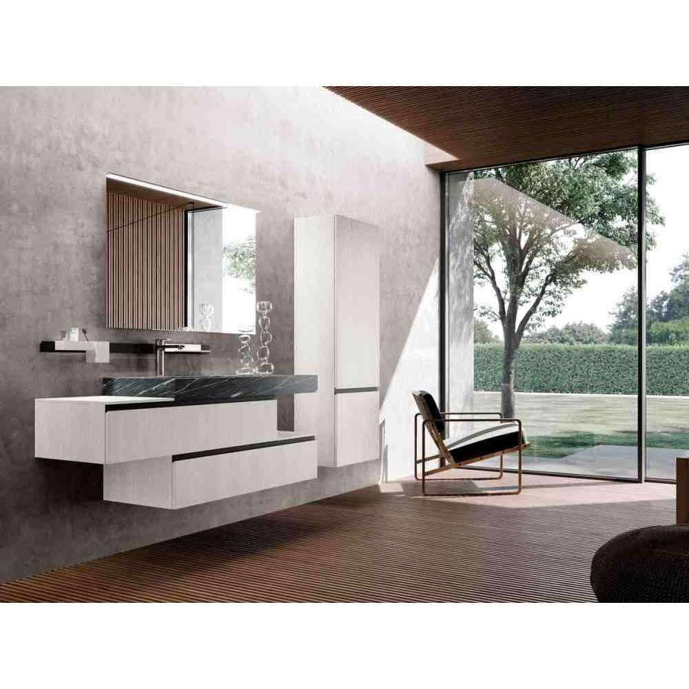 Pojedyncza drewniana szafka pod umywalkę z lustrem Archeda Linea 04