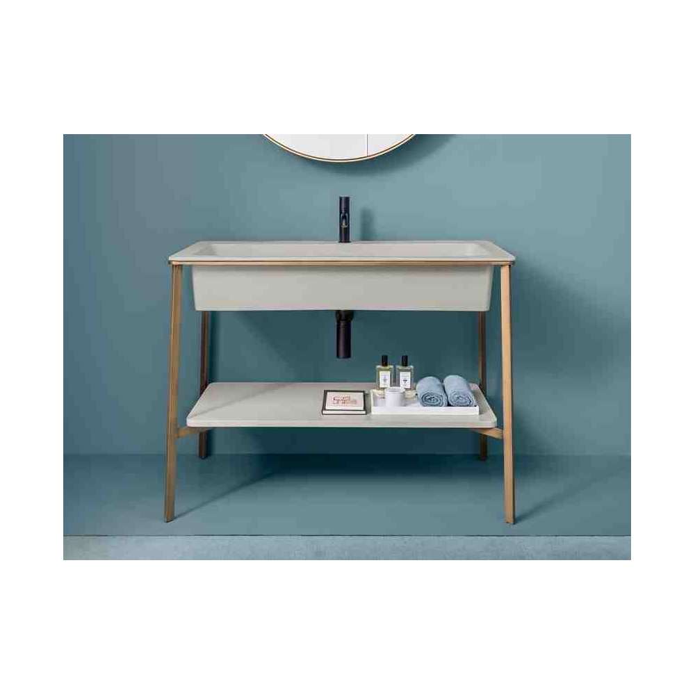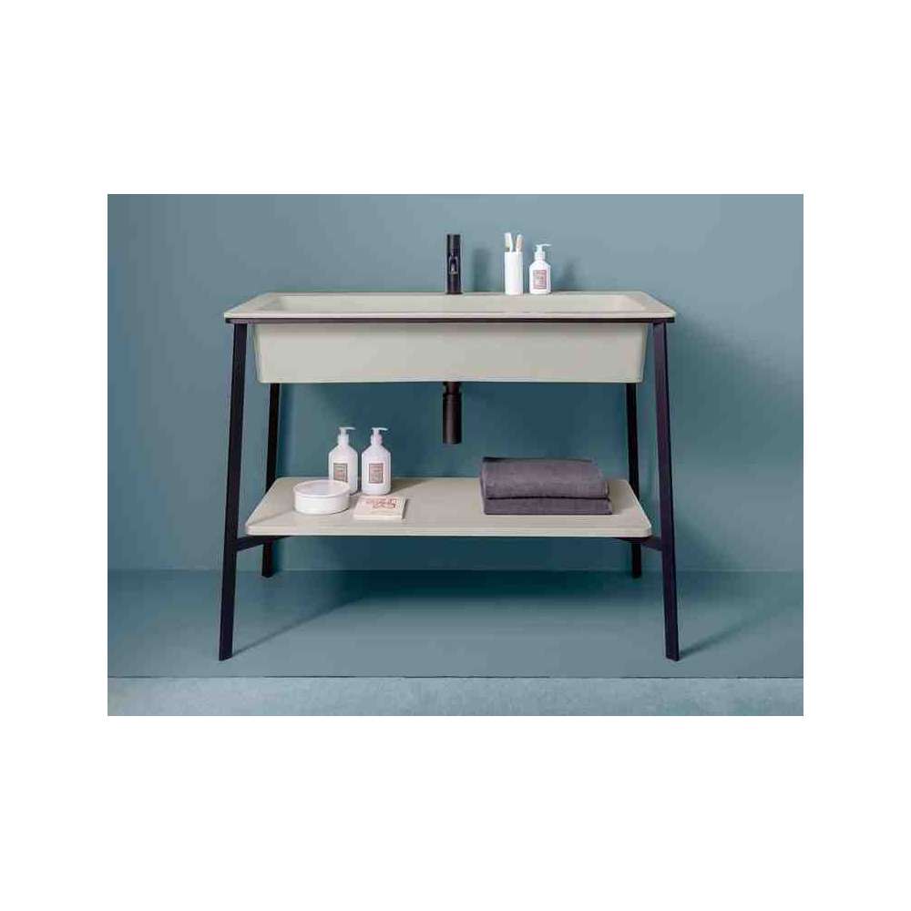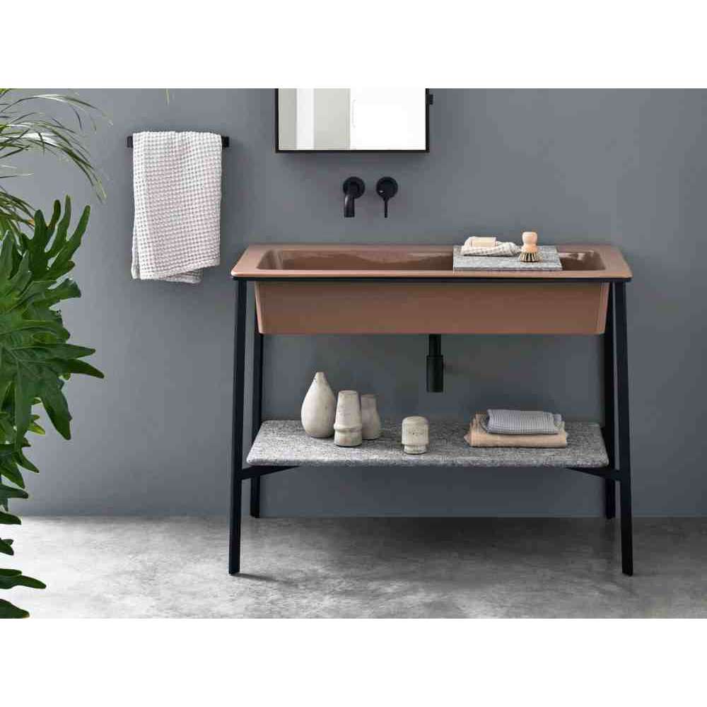 Ewolucja kolekcji I Catini, ten prostokątny model poszukuje funkcjonalności bez poświęcania stylu retro, który charakteryzuje całą linię. Duży, obszerny wymiar umywalki jest osadzony w minimalistycznej konstrukcji stalowej, w której można umieścić niską półkę lub wstawić pojemnik na pojemnik.