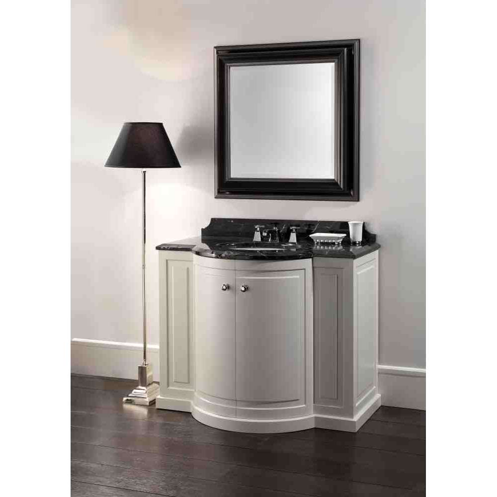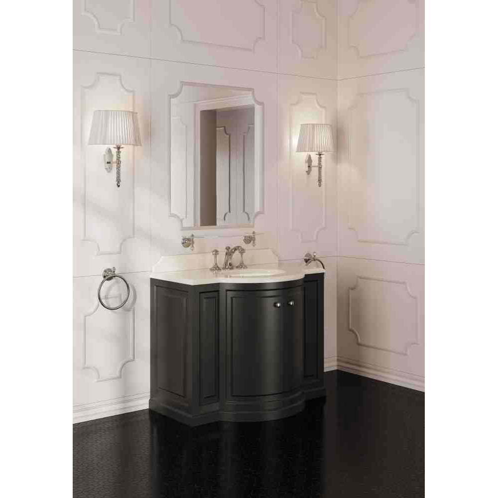 Clarence to klasyczna umywalka, zaprojektowana z eleganckimi profilowanymi, zakrzywionymi drzwiami i ozdobiona chromowanymi gałkami. Blat dostępny w następujących rodzajach marmuru: biały Carrara, czarny Marquinha, Botticino Fiorito lub biały Afyon. - Podstawa z lakierowanego drewna dostępna na zamówienie w kolorach ciemnoszarym, złamanej bieli i ciepłym szarym.