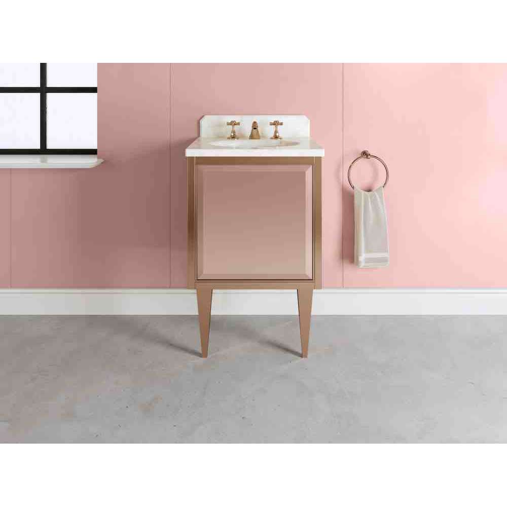 Her to kompaktowa umywalka, która swoją inspirację czerpie bezpośrednio z proporcji i kształtów wielkiego amerykańskiego okresu projektowania Bauhausu. Podstawowe linie ramy bazowej to drzwi otwierane push pokryte diamentowym lustrem. Czystość formalna doskonale łączy się ze szlachetnością marmurowego blatu i wyrafinowaniem wykończeń, a wszystko to na życzenie klienta.