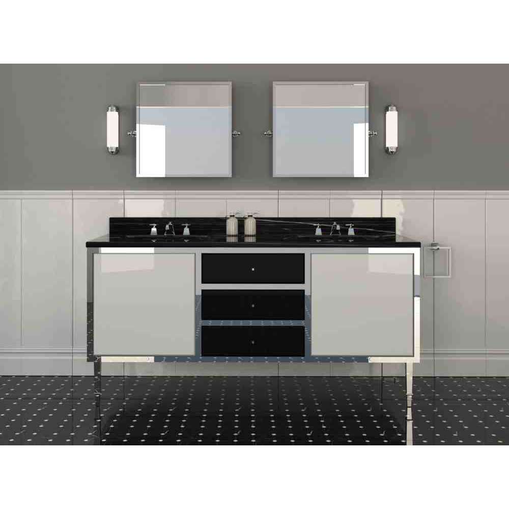 Jazz 3 to świetna umywalka, która na nowo interpretuje bryły geometryczne i proporcje architektury Bauhausu i przekształca je w jasne lustrzane powierzchnie, które podkreślają ich profile. Podstawowy, kwadratowy projekt charakteryzuje się dwojgiem dużych drzwi i jedną komodą z lakierowanego drewna w kontrastujących kolorach. Blat z czarnego marmuru Marquinha lub białego marmuru Carrara spoczywa na chromowanych mosiężnych nogach. Drewniana podstawa dostępna jest w kolorach: głęboka czerń, czysta biel, krem, ciepła szarość lub błoto, z wykończeniami w kolorze chromu, jasnego złota lub polerowanego niklu.