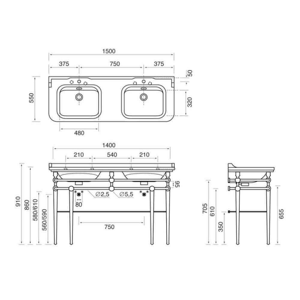 Podwójna umywalka konsolowa z relingiem na ręczniki