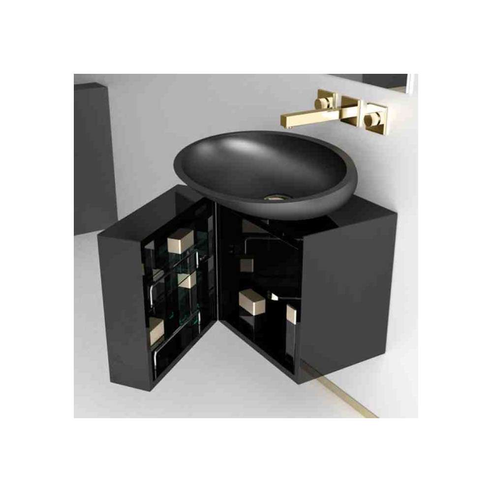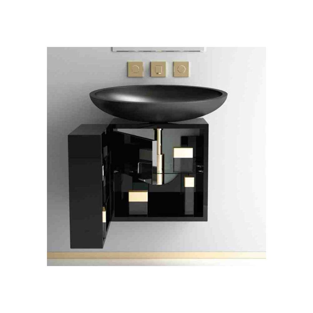 Pojedyncza drewniana szafka pod umywalkę Glass Design Leonardo CUBUS BLACK KOOL MAX BLACK