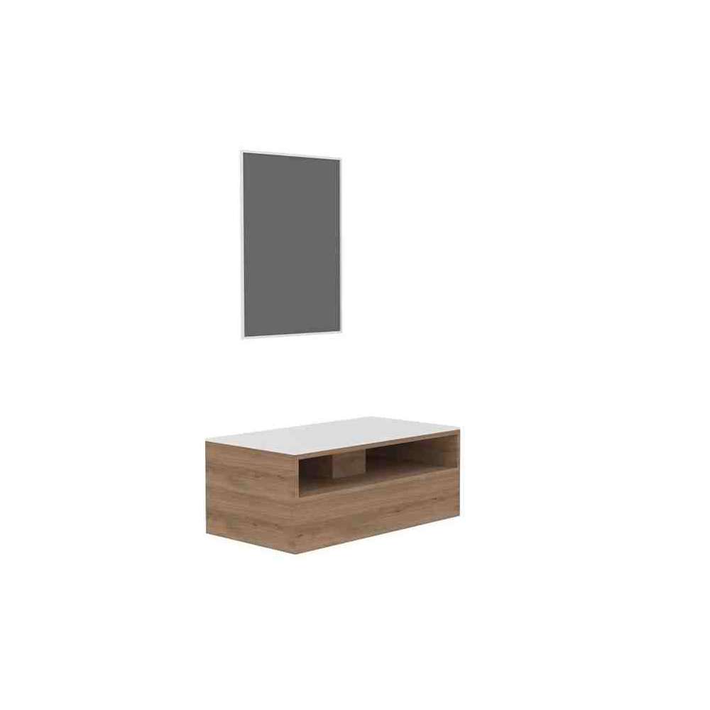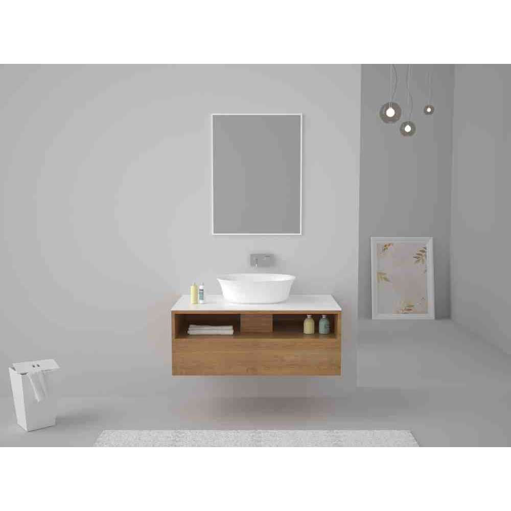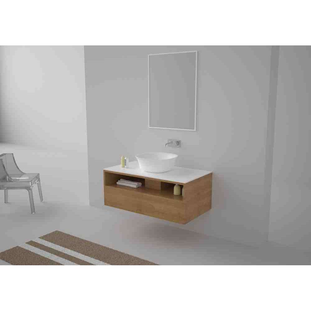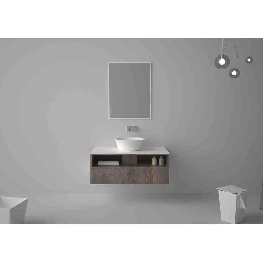 MDF Londra meble cm. 100x55x40 z blatem z litej powierzchni, szufladą i otwartą komorą, w komplecie z podświetlanym lustrem Londra cm 100x70 .