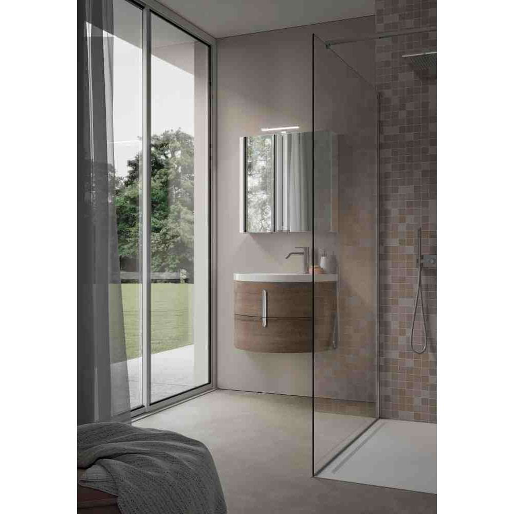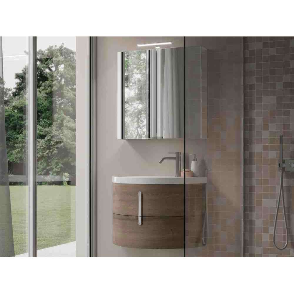 Pojedyncza wisząca szafka pod umywalkę z ceramiki i drewna Ideagroup Moon COMP M02