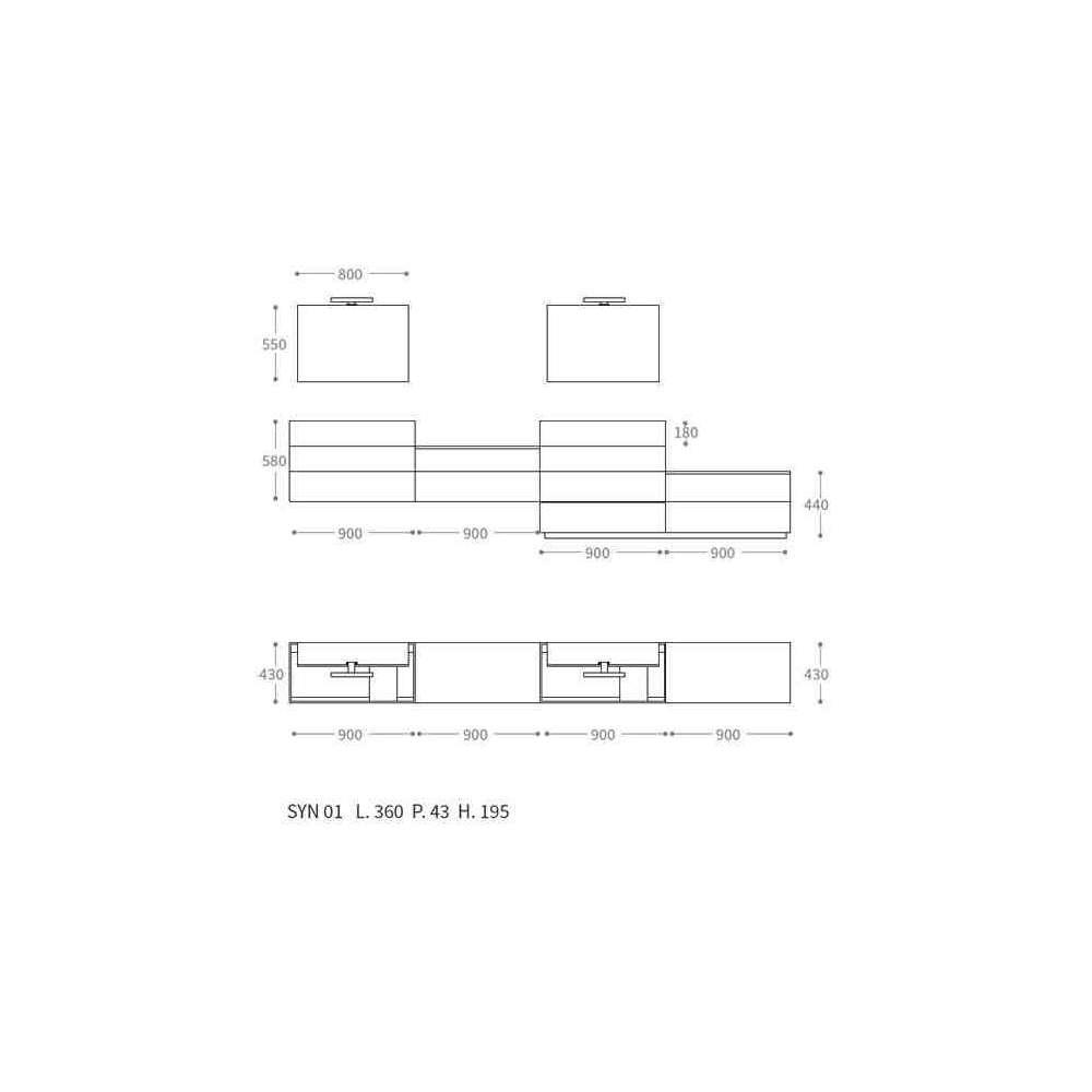 Dwuczęściowa szafka pod umywalkę z szufladami Lasa Idea Syn 01