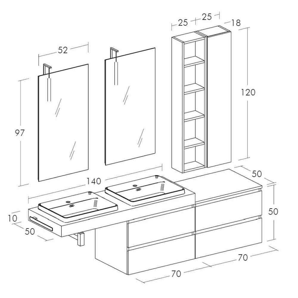 Pojedyncza wisząca szafka pod umywalkę z szufladami Legnobagno FREEDOM F35