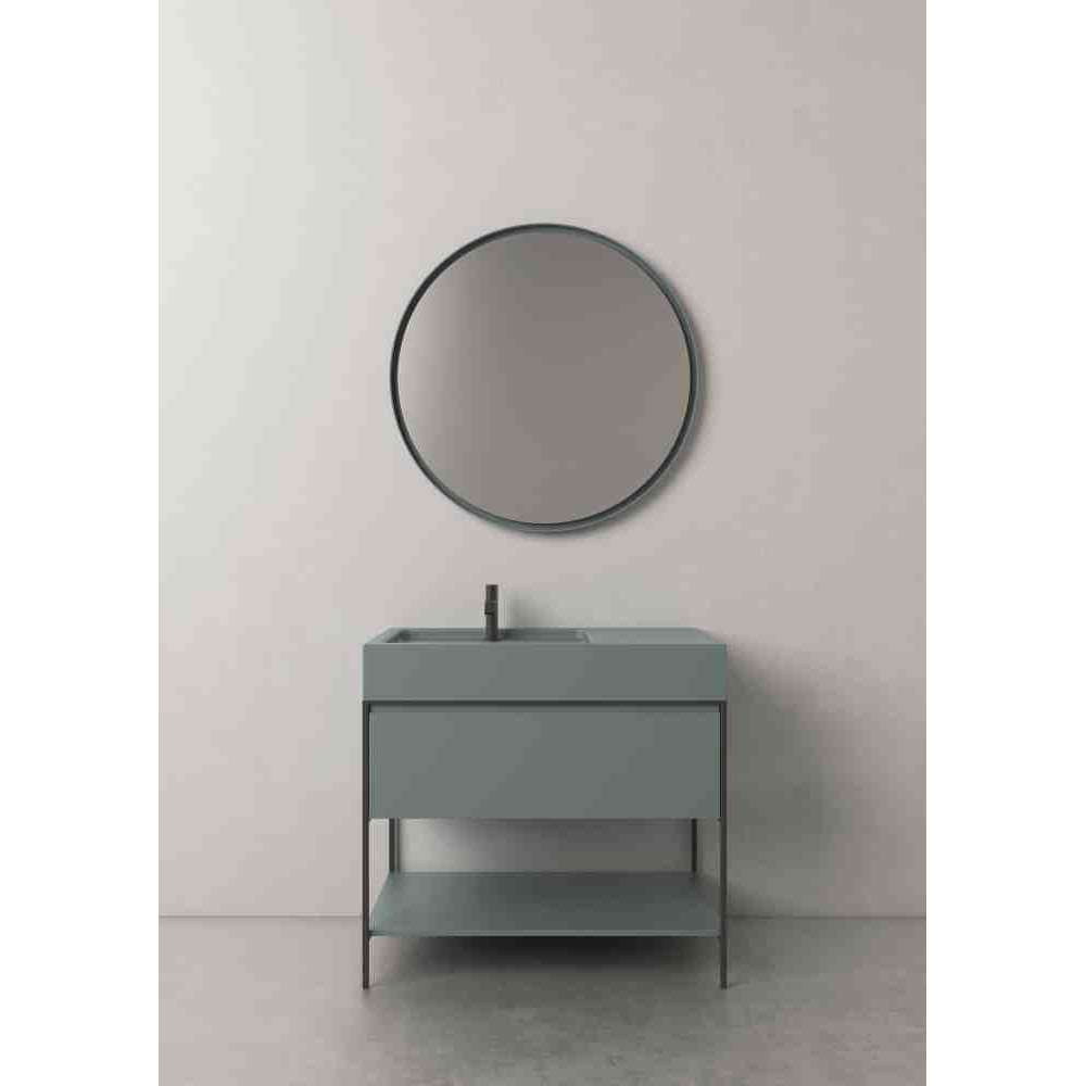 Elen to mebel z wyposażoną szufladą: umywalką w wykończeniu ceramicznym Antracyt mat, szufladą w wykończeniu drewnianym oraz półką z płyty MDF.