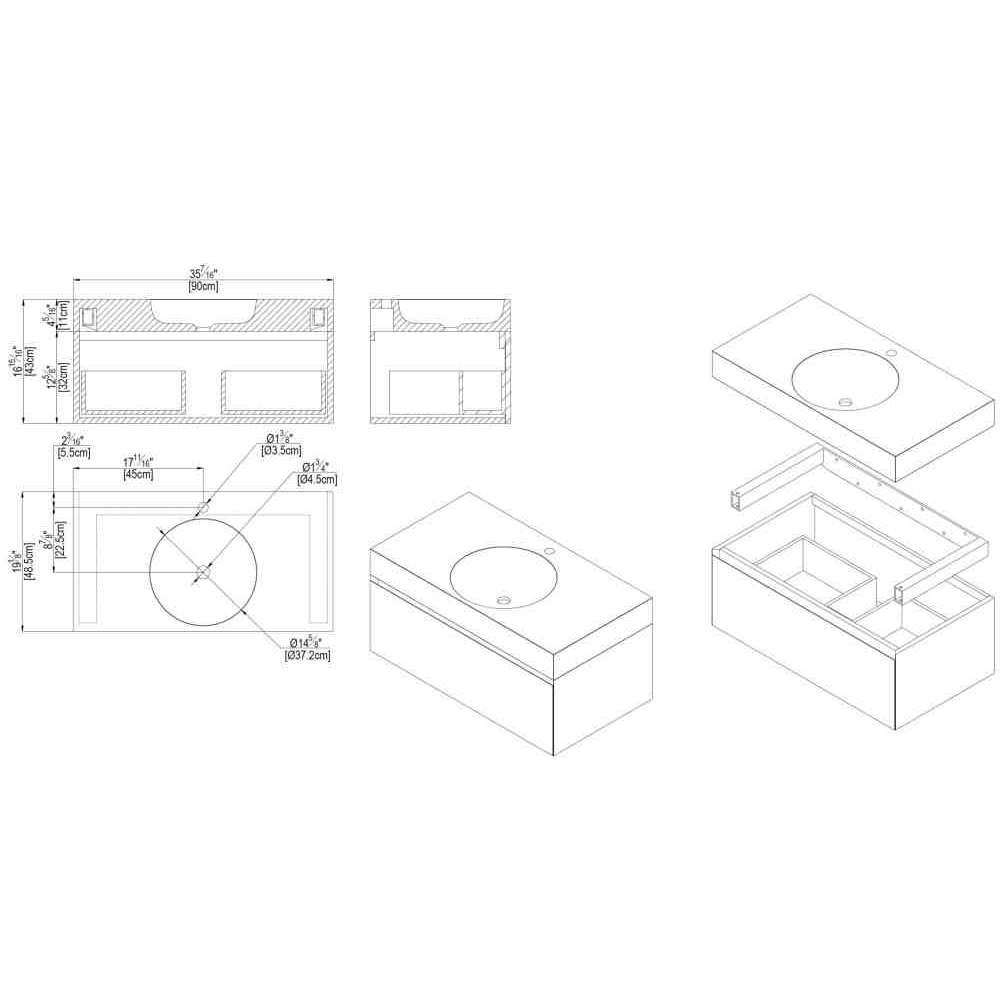Pojedyncza wisząca szafka pod umywalkę z naturalnego kamienia i drewna Porcelanosa CIRCLE COUNTERTOP