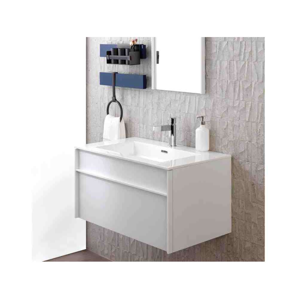 Jest to bardzo wszechstronna szafka łazienkowa z szufladą o dużej pojemności, która posiada wyjmowaną tackę pozwalającą na utrzymanie porządku w łazience. Charakteryzuje się przede wszystkim bardzo cienkimi frontami, które dodają stylu i dystynkcji, a także dwoma zupełnie różnymi wykończeniami, takimi jak Biały i Sugi Czarny, oba bardzo atrakcyjne i eleganckie, które idealnie nadają się jako centralny element każdej łazienki.