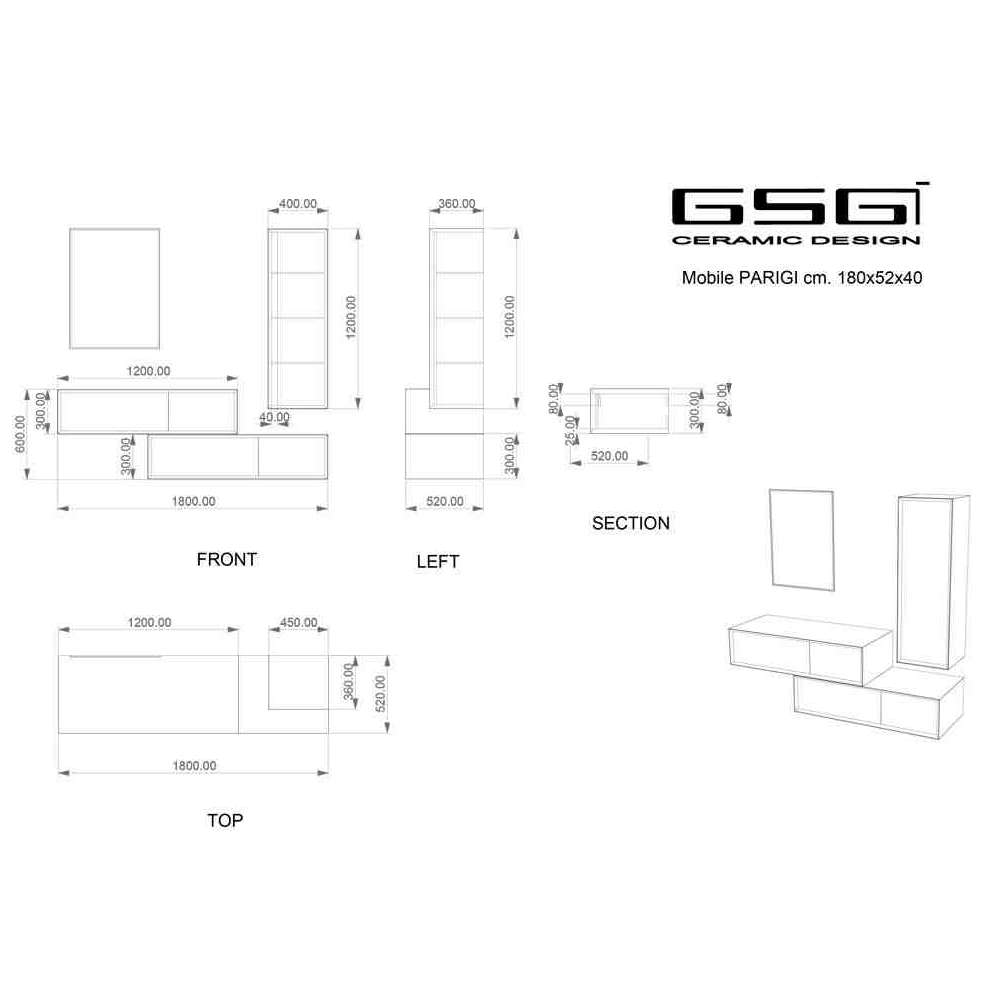 Szafka łazienkowa wisząca segmentowa z płyty MDF z lustrem GSG Ceramic Design Parigi