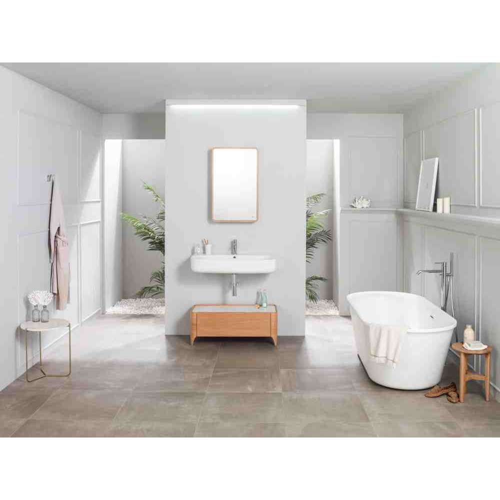 Czystość naturalnego dębu połączona z wytrzymałością ceramiki X-LIGHT Premium daje w efekcie inspirowane Skandynawią lustro i szafkę Nature. Całość wykonana jest z naturalnego forniru dębowego połączonego z ceramicznym wykończeniem z marmuru Calacatta. Elegancja tej jednostki tkwi w prostym nordyckim stylu i geometrycznej czystości. Atrakcyjny liniowy design z zaokrąglonymi krawędziami zawiera szafkę ukrytą z boku lustra, zwiększając w ten sposób pojemność urządzenia i podkreślając wizualnie czyste linie oferowane przez Nature.