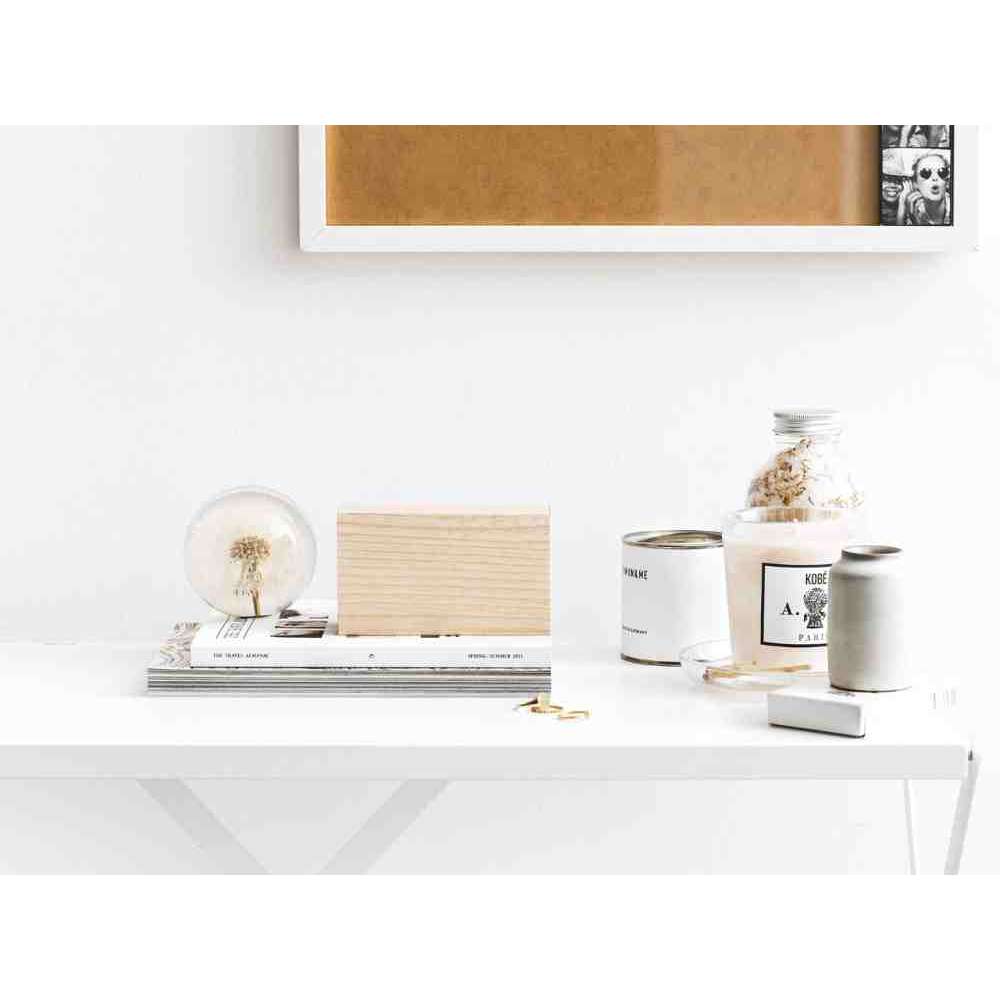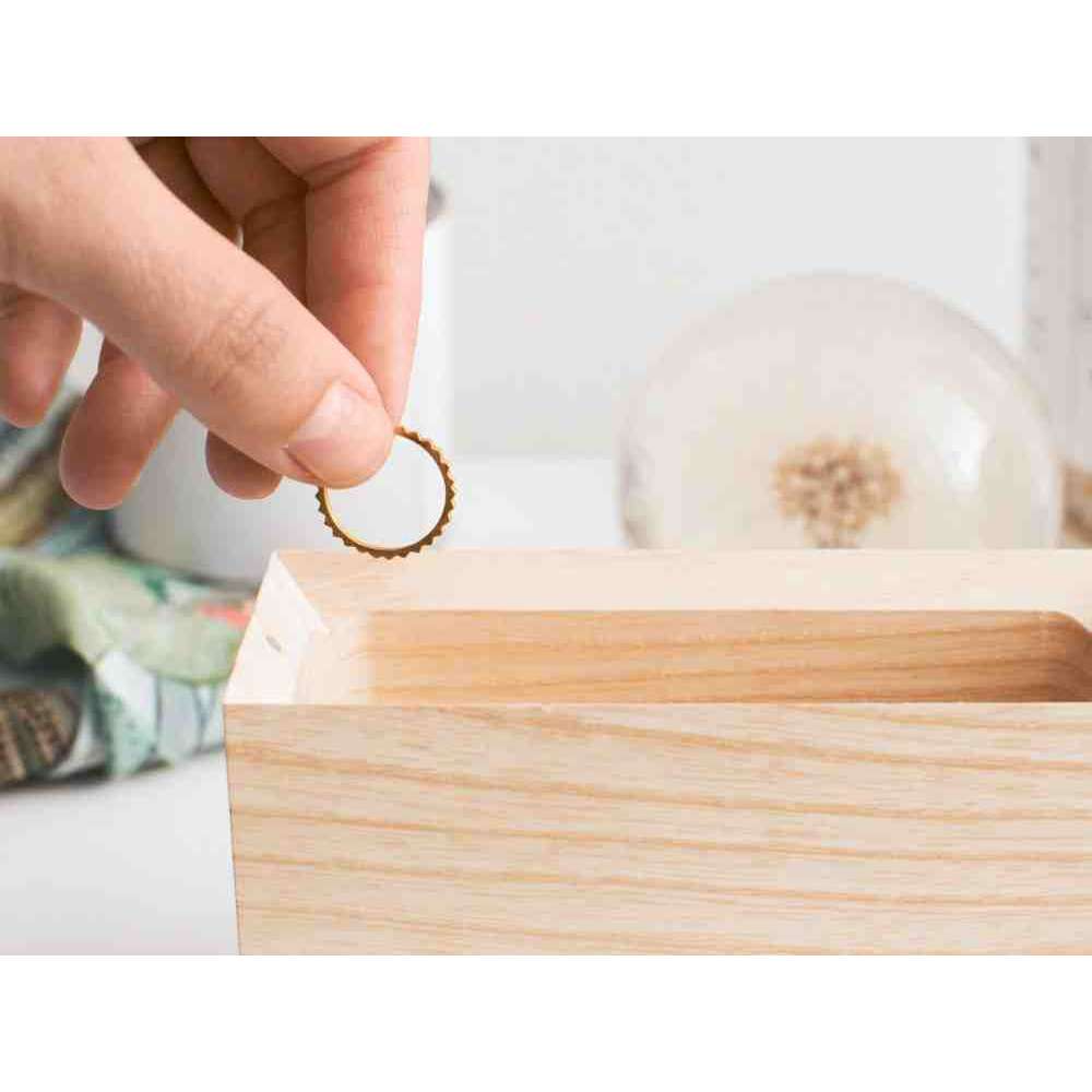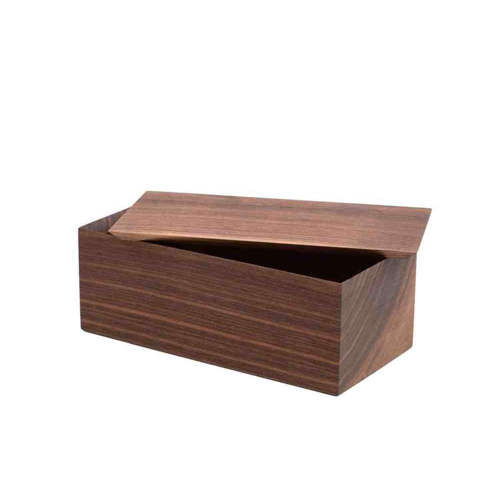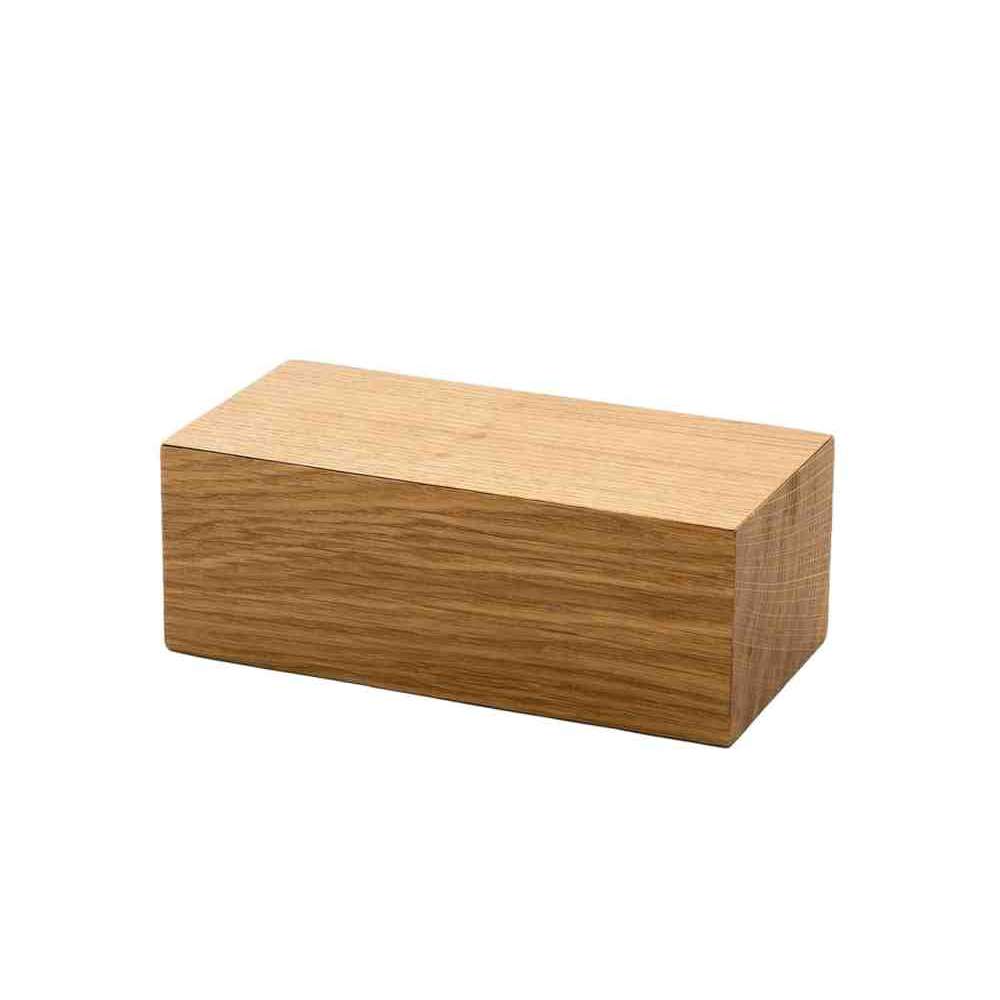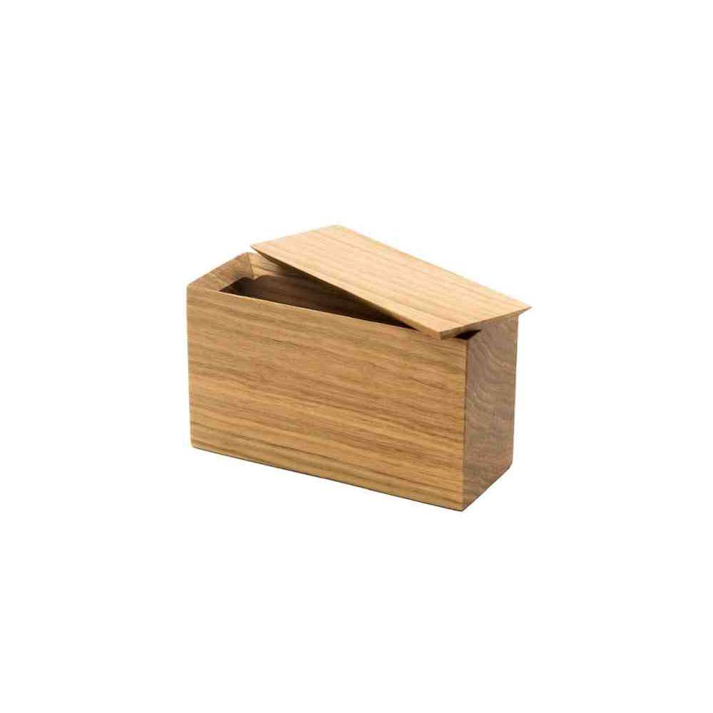 Na pierwszy rzut oka wyglądający jak solidny blok drewna, pudełko do przechowywania Gemma jest zachwycającym trompe l'oeil. Dla niewprawnego oka Gemma jest prostą, solidną blokadą bez widocznego sposobu na wejście – wścibskie oczy nie zbliżą się do niej. Pokrywka jest utrzymywana na miejscu za pomocą magnesu, co oznacza, że jest idealnie zintegrowana, bez widocznych zawiasów ani łączeń. Jest wystarczająco pojemna, aby pomieścić Twoje rzeczy.