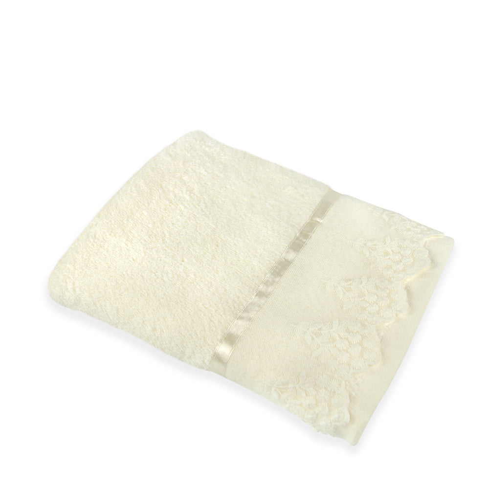 Zobacz większe Ekskluzywny ręcznik bawełniany z dekoracyjną koronką w kremowym odcieniu 30x50 cm