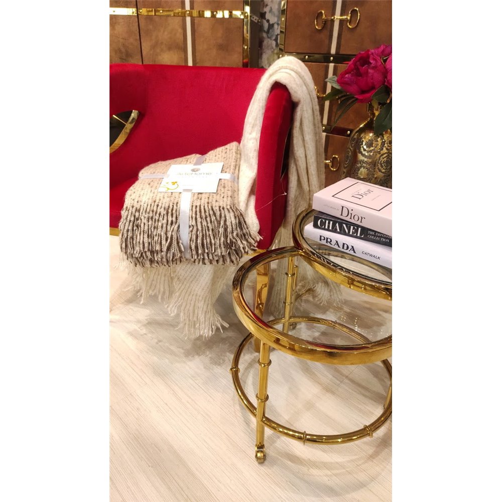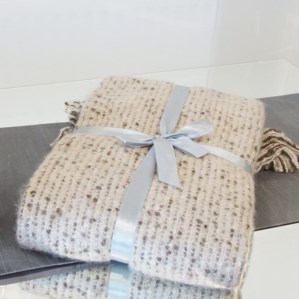 Miękki pled moherowy w brązowo-beżowym kolorze