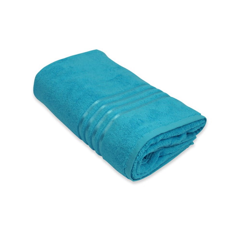 Zobacz większe Ręcznik frotte w kolorze niebieskim ze 100% bawełny ozdobiony tasiemką 100x150 cm