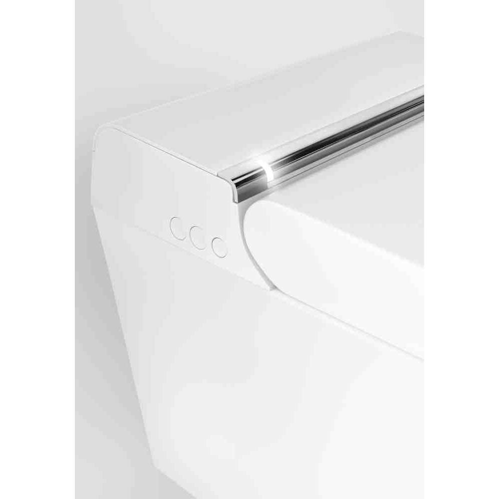 HYGEA to wisząca rimAWAY® Wc 59 x 37,5 cm, ze zintegrowanym bidetem i miękkim domykaniem siedziska. Dysza ze stali nierdzewnej, ruchome automatyczne czyszczenie i pozycja dyszy. Oczyszczanie pośladków i kobiet. Funkcje Kids i „Auto” (higiena + suszarka). Suszarka z regulacją temperatury i intensywności powietrza. Pilot zdalnego sterowania, czujnik radarowy i oświetlenie grzecznościowe. Pamięć użytkownika, program antywapienny, automatyczne opróżnianie zbiornika.