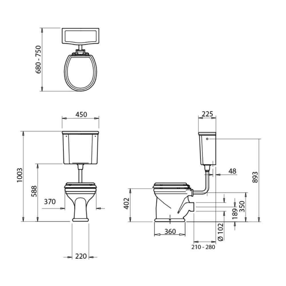 Toaleta montowana na podłodze z zewnętrzną spłuczką Gentry Home Coventry