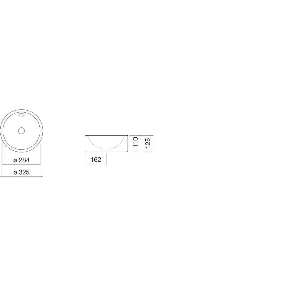 Umywalka okrągła, ø 325mm, wysokość 125mm, przeszklona, bez otworu na baterię, z przelewem, w komplecie zestaw montażowy i przelewowy
