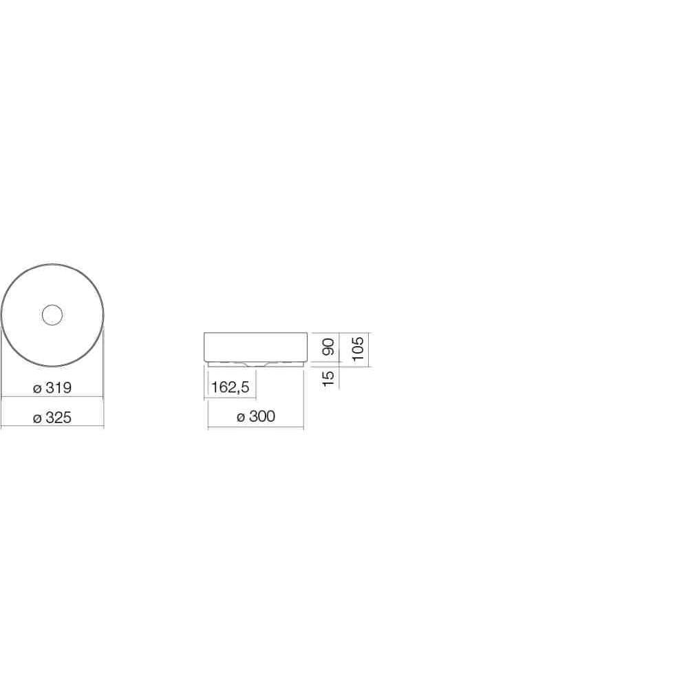 Umywalka okrągła, ø 325mm, wysokość 105mm, przeszklona, bez otworu na baterię i przelewu, w komplecie z zaworem odpływowym chromowanym, zestawem montażowym i ramką dystansową w kolorze czarnym