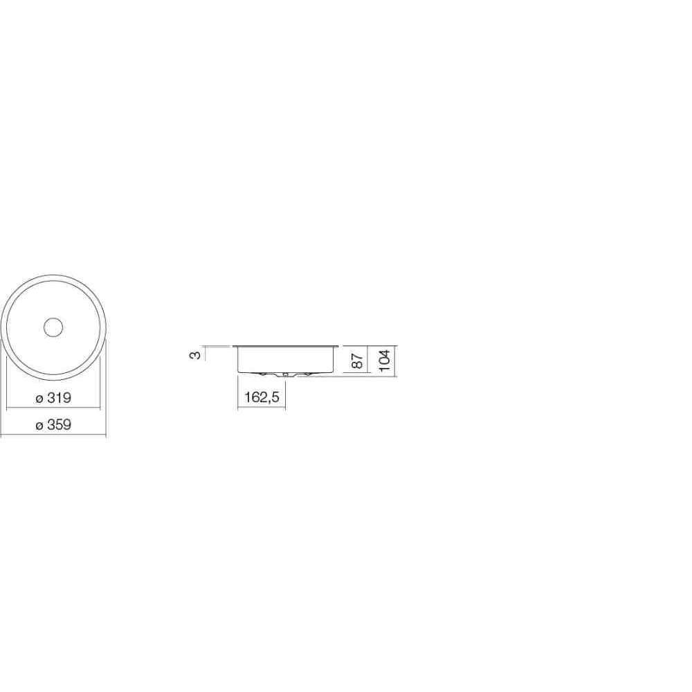 Umywalka podblatowa, okrągła, forma ø 319mm, głębokość 87mm, przeszklona wewnątrz i na zewnątrz, bez otworu na baterię i przelewu, w komplecie z zaworem spustowym z chromowaną zaślepką
