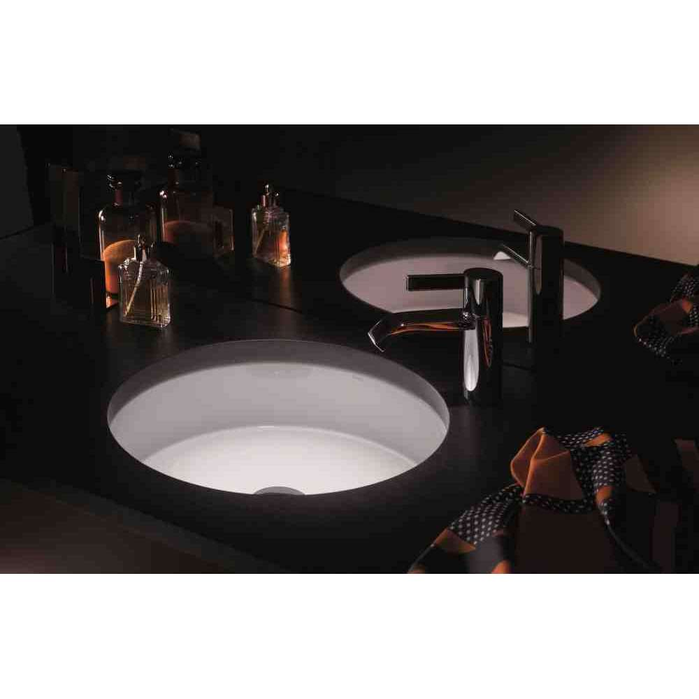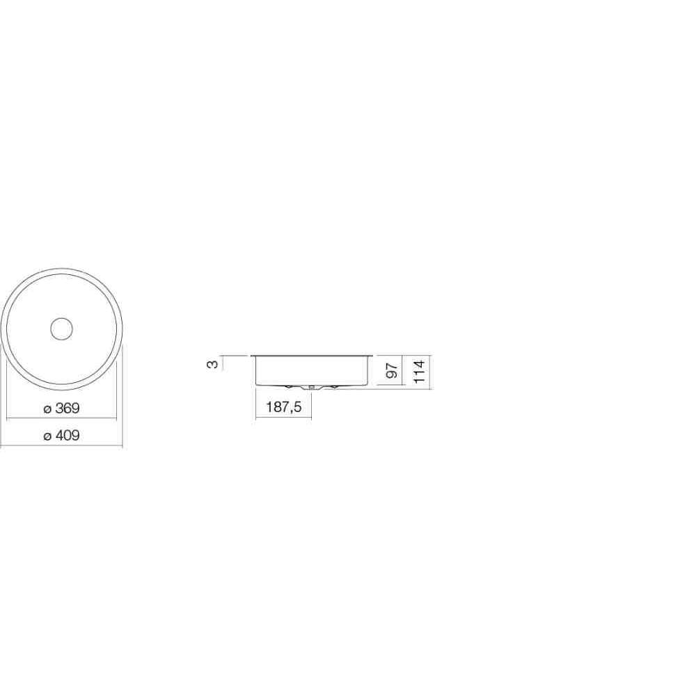 Umywalka podblatowa, okrągła, forma ø 369mm, głębokość 97mm, przeszklona wewnątrz i na zewnątrz, bez otworu na baterię i przelewu, w komplecie z zaworem spustowym z chromowaną zaślepką
