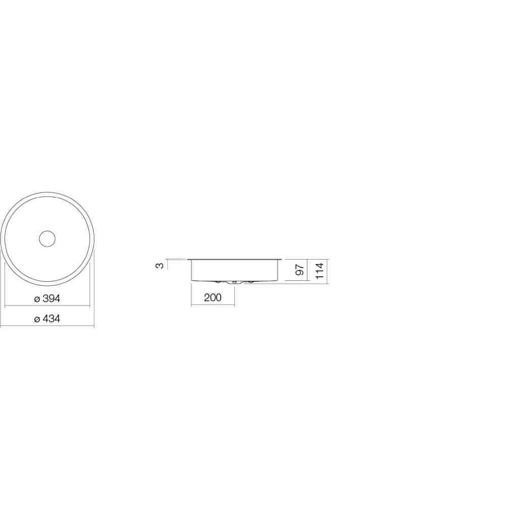 Umywalka podblatowa, okrągła, forma ø 394mm, głębokość 97mm, przeszklona wewnątrz i na zewnątrz, bez otworu na baterię i przelewu, w komplecie z zaworem spustowym z chromowaną zaślepką