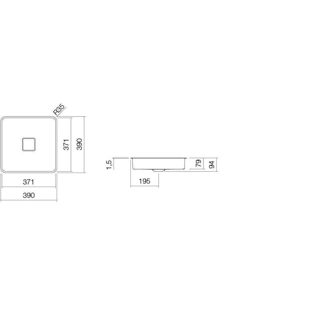Umywalka podblatowa, kwadratowa, forma 371 x 371 mm, głębokość 79 mm, przeszklona wewnątrz i na zewnątrz, bez otworu na baterię i przelewu, z zaworem odpływowym z białą przeszkloną pokrywą