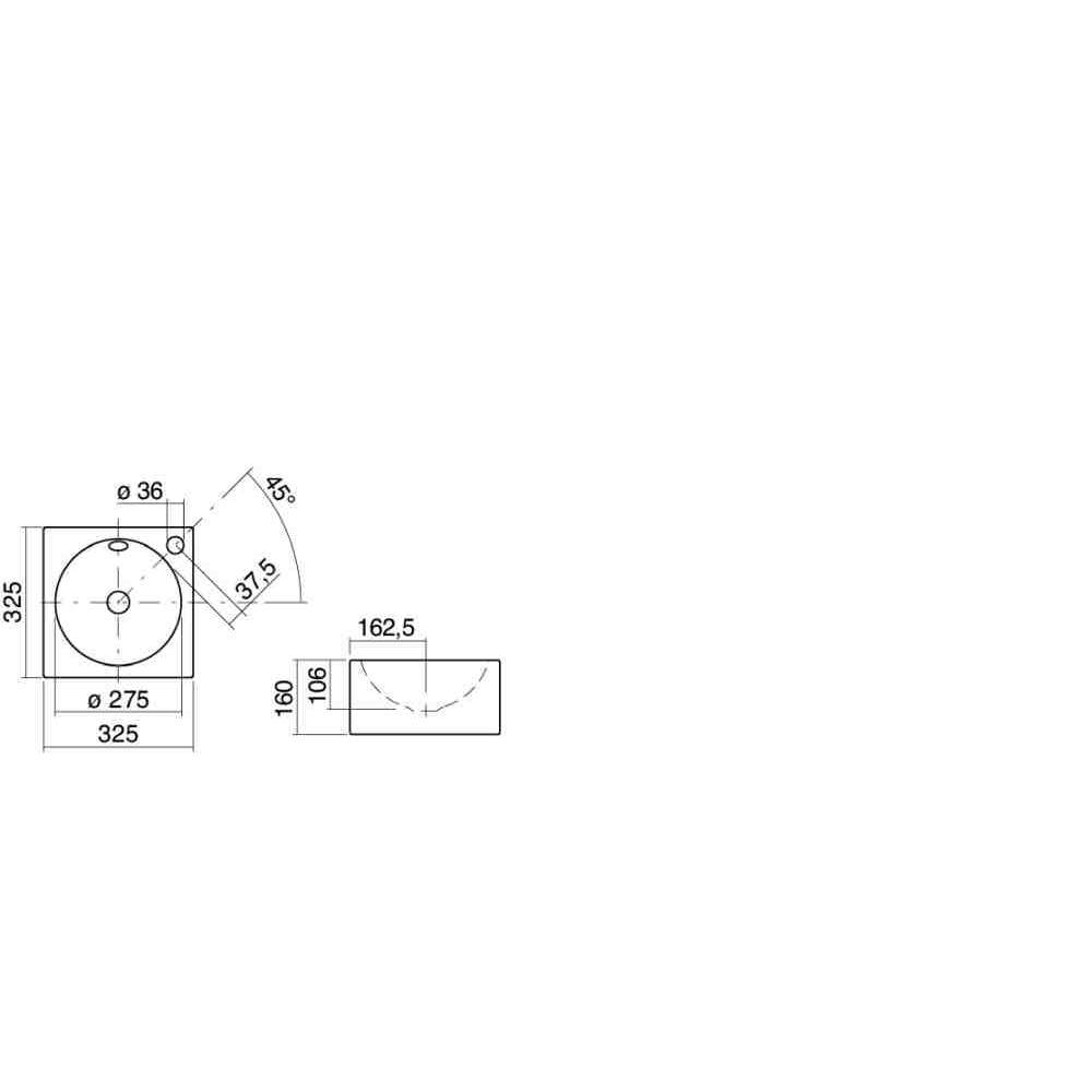 Szafka pod umywalkę, kwadratowa, 325 x 325 mm, okrągła umywalka wyśrodkowana, przeszklona wewnątrz i na zewnątrz, wysokość 160 mm, z otworem na baterię i przelewem, w tym zestaw montażowy i zestaw przelewowy