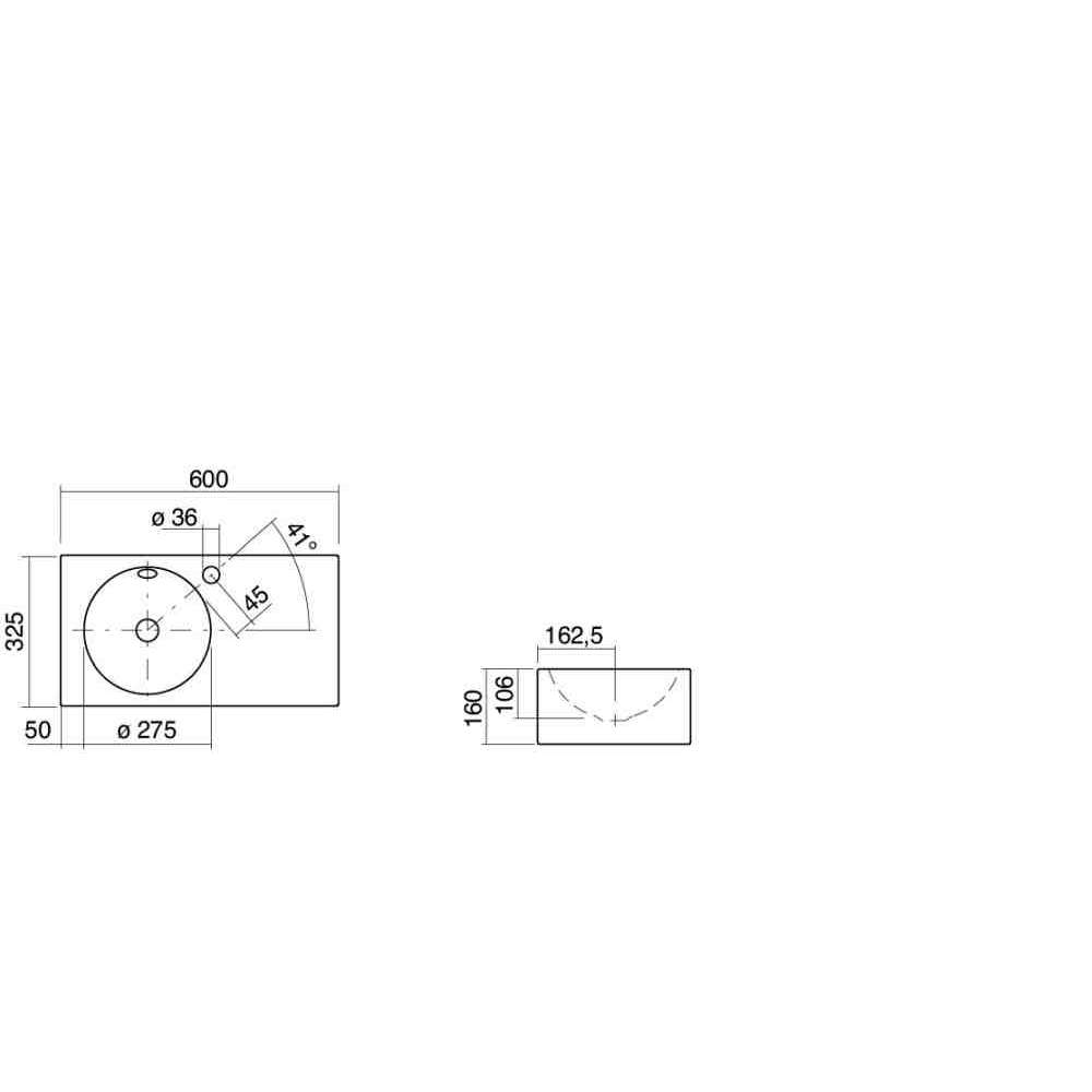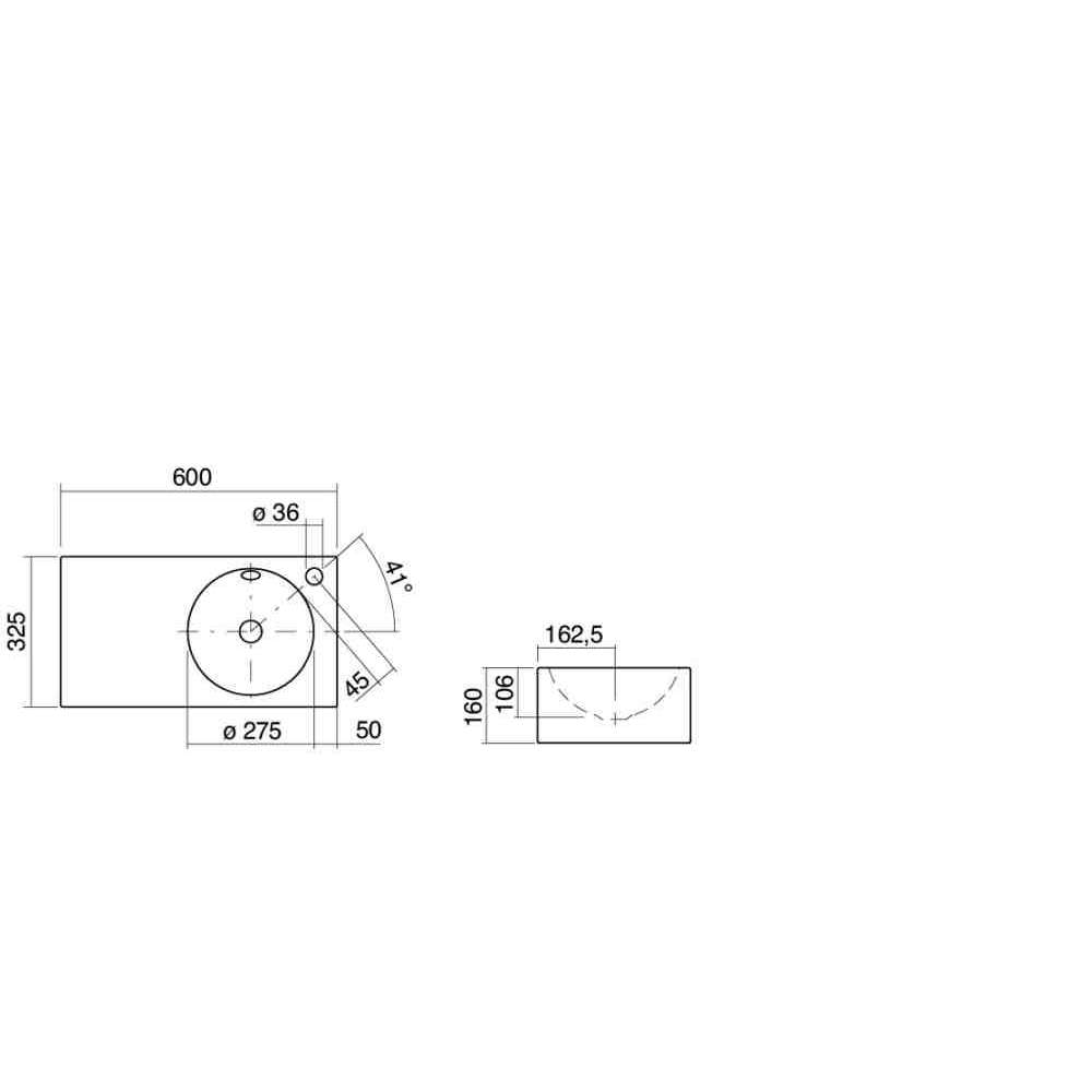 Szafka pod umywalkę, prostokątna, 600 x 325 mm, okrągła forma umywalkowa z lewej/prawej strony, przeszklona wewnątrz i na zewnątrz, wysokość 160 mm, z otworem na baterię i przelewem, w komplecie zestaw mocujący i zestaw przelewowy
