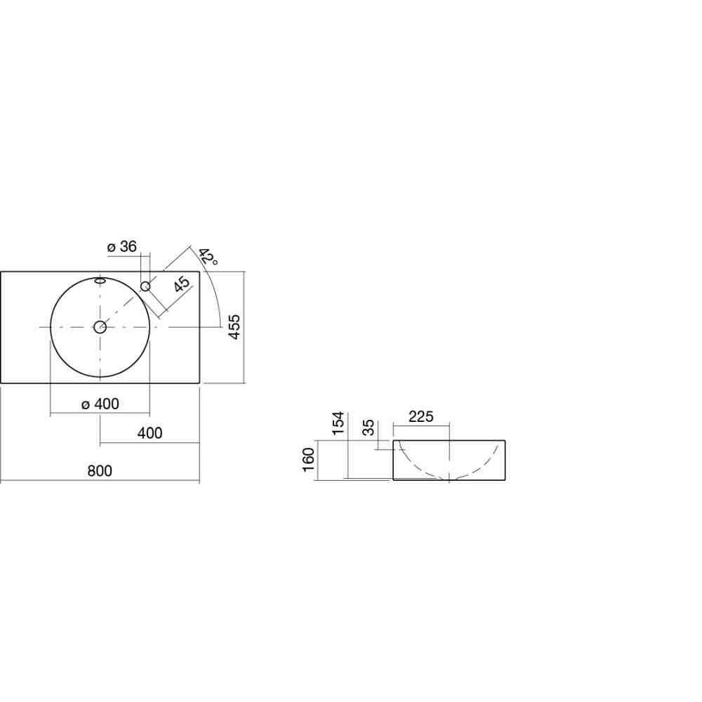 Szafka pod umywalkę, prostokątna, 800 x 455 mm, wyśrodkowana na umywalkę okrągłą, przeszklona wewnątrz i na zewnątrz, wysokość 160 mm, z otworem na baterię i przelewem, zawiera zestaw mocujący i zestaw przelewowy